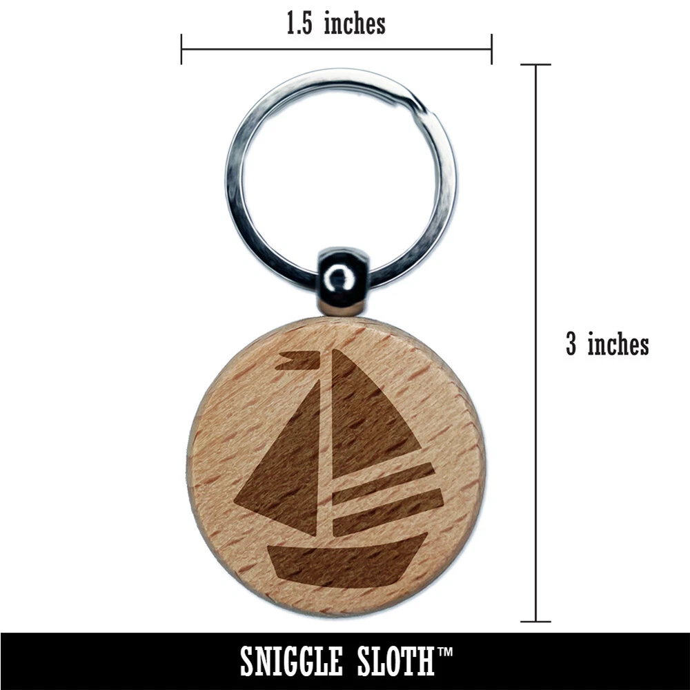 Summer Sailboat Sailing Engraved Wood Round Keychain Tag Charm