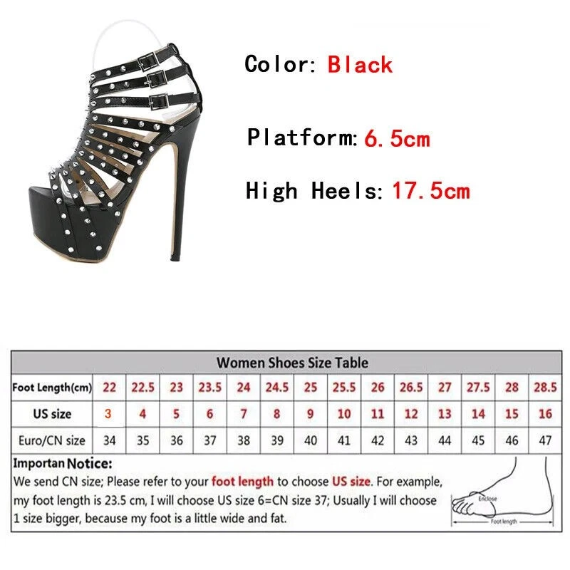 Type: Heel US Shoe Size: 4-11 Brand: Unbranded Heel Style: Stiletto Season: Summer Department Name: ADULT Outsole Material: Rubber Sandal Type: GLADIATOR Back Counter Type: Cover Heel Features: Breathable, Non-Slip Item Type: sandals Upper Material: Faux Leather Style: Platform Country of Origin: China Heel Height: Ultra High (4 in & Higher) Closure Type: buckle strap Fashion Element: rivet Toe Shape: Peep Toe Department: Women Heel Type: Thin Heels Occasion: Business, Casual, Party/Cocktail, Wedding, Workwear Pattern Type: Solid