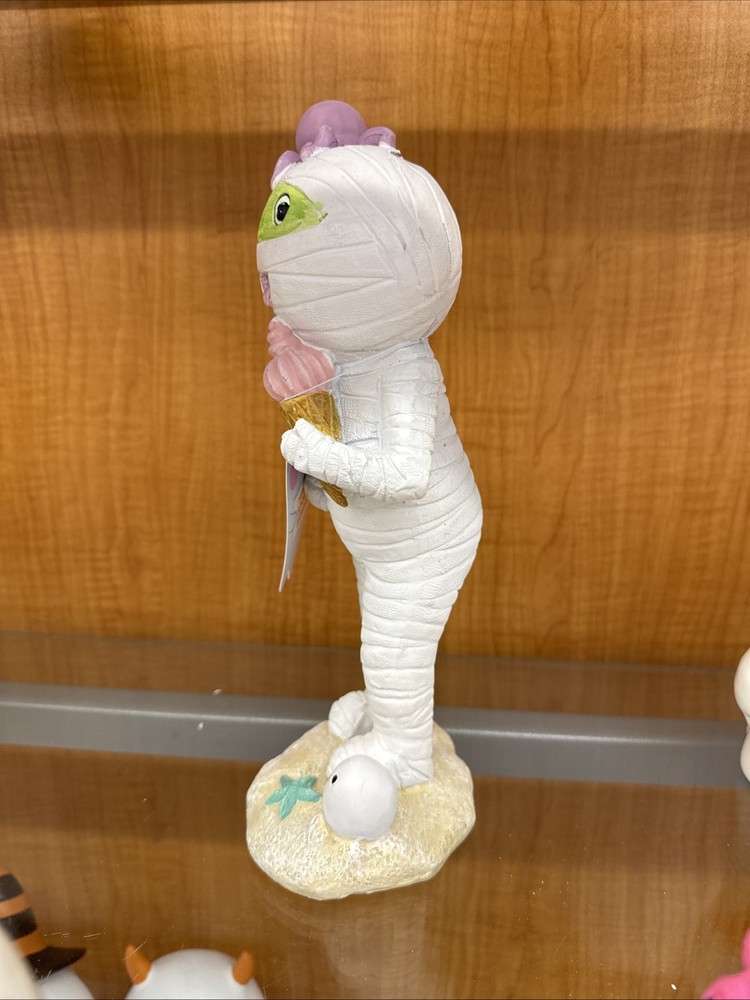 The SummerWeen Mummy With Ice Cream Cone & Octopus Head figurine is a unique and whimsical decoration perfect for Halloween. Made by the brand Here For Spooky Summer, this figurine features a mummy holding an ice cream cone and an octopus head, adding a fun and playful touch to your seasonal decor. The combination of spooky elements with a touch of sweetness makes it a standout piece for your Halloween display.
