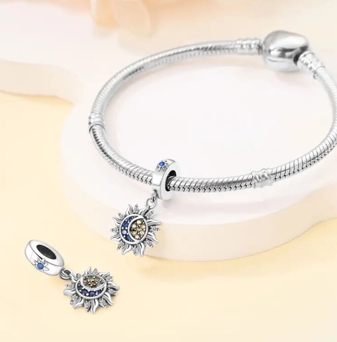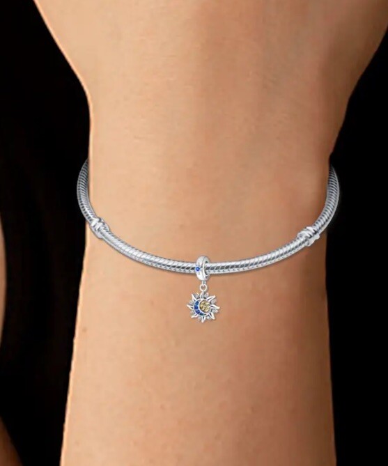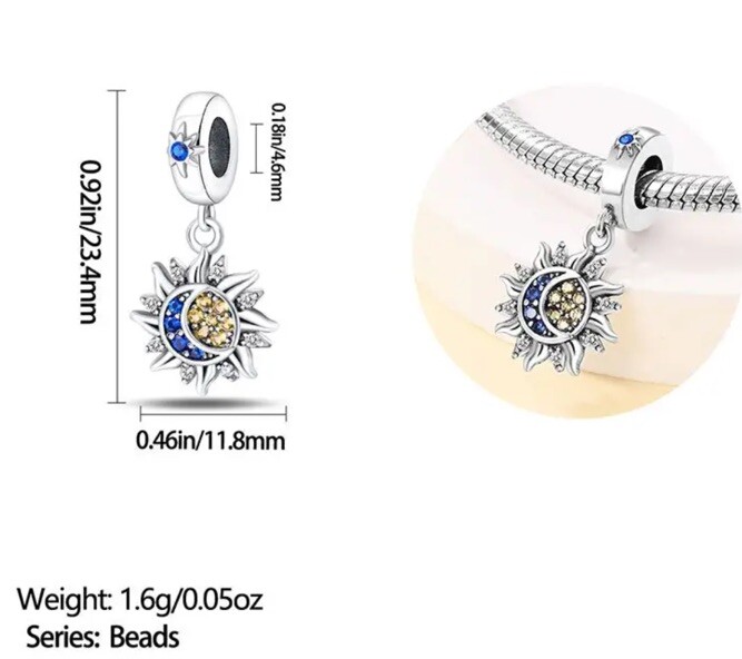 Sun Moon Silver Plated Blue Yellow Planet Charm Bead for Bracelet