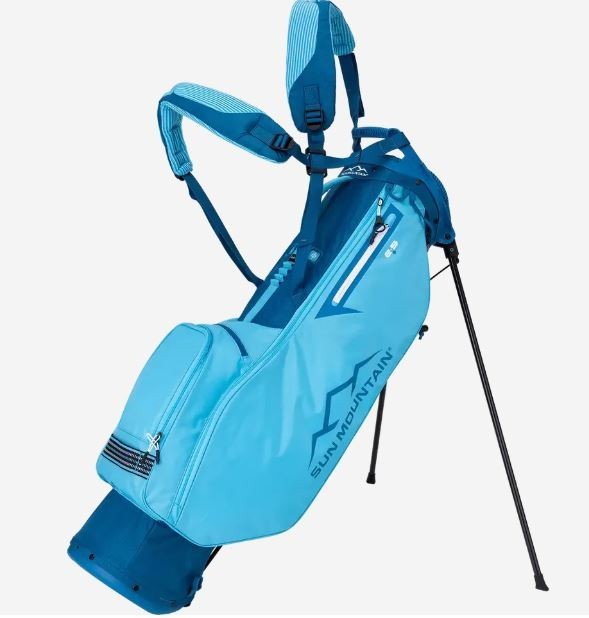 We are a reputable golf company that has been in business in St. Louis, Missouri since 1975. We have been doing this for 40 years because we do things right the first time. WE HAVE THE FASTEST SHIPPING ON EBAY! Don't believe us? Check out our Feedback. If you have questions, please feel free to ask. As always, thank you for looking. Sun Mountain 2.5+ Stand Golf Bag COLOR: Surf/River STYLE: Stand Bag DIVIDERS: 4-Way Divider CONDITION: NEW with Tags (10/10) RAIN HOOD: Included! 2.5+ Stand Bag Designed for the avid walking golfer, the 2.5+ redefines the features that can be offered in an ultralight golf bag. It has contoured, high-density foam shoulder straps for carry comfort, a roomy, 7.5" top and six pockets including a beverage pouch. All of this and it still weighs under three pounds. Features: Six pockets include a full-length apparel pocket; a velour-lined valuables pocket; a ball pocket with two-way zippers; a beverage pouch; and multiple accessory pockets Lightweight, high-strength-to-weight plastic top with a comfort-grip handle X-Strap System is easy to get on and off and works well as a single strap for short carries Four full-length dividers Integrated, comfort hip pad Ultra-lightweight, highly durable carbon fiber legs Matching rainhood included Top Width: 7.5" Pockets: 6 Strap Type: X-Strap Dual Strap System Dividers: 4 Bag Weight: 2.9lbs