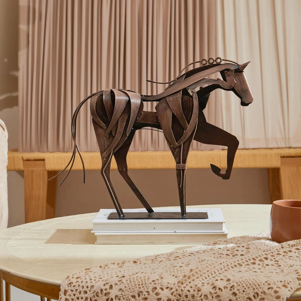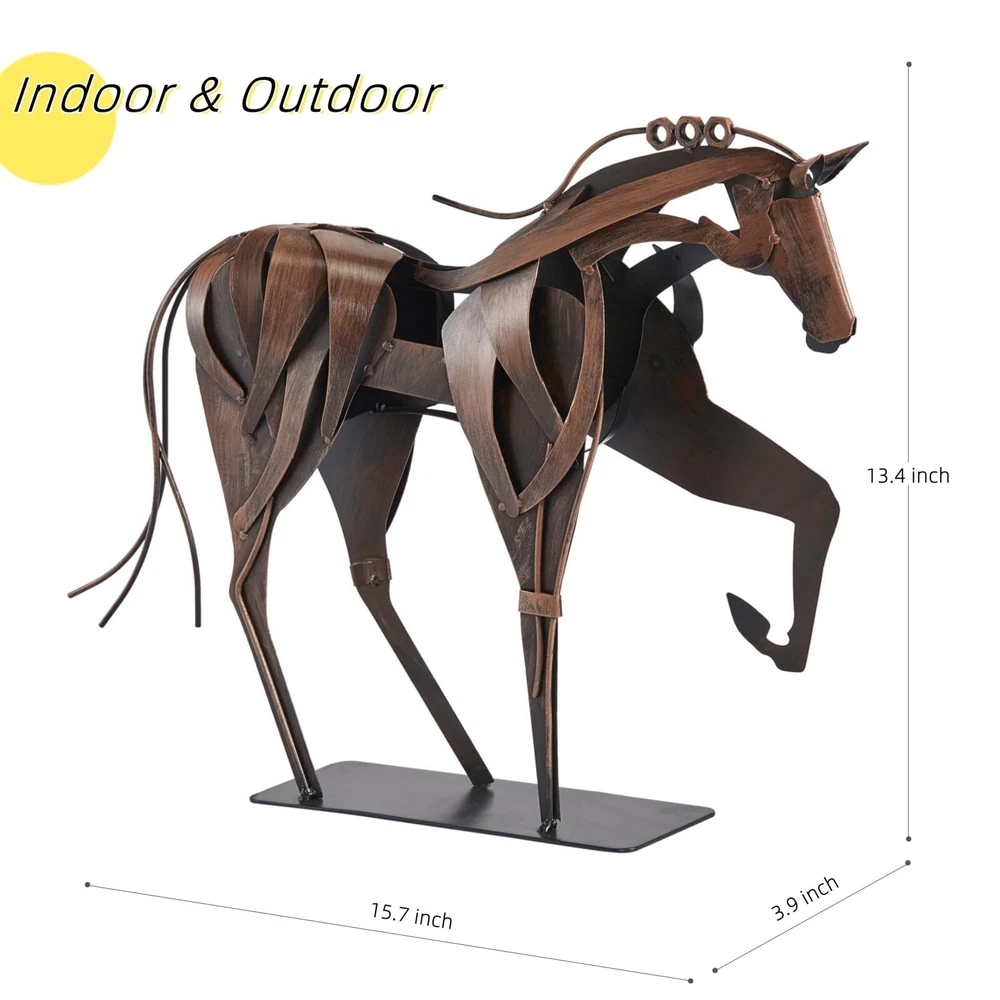 Original Design: SunBlogs Art handmade horse statue offers a distinct and eye-catching design, making it a standout decor piece for office, home Handmade & Hand-painted: Each piece involves complex craftsmanship, cutting, modeling, welding, anti rust treatment, coloring, matte surface treatment, to make sure you have the coolest horse sculpture art around Versatile Use: Suitable for both indoor and outdoor spaces, this horse statue art can enhance the aesthetics of your living room, office desk, garden, patio, or any other area you choose Ideal Gift: As a handicraft gift for horse lovers, this horse statue is thoughtful and meaningful, appealing to those who appreciate equine-themed decor and art One of A Kind: As our horse statues are handmade & hand-painted, each one is unique. Each piece comes in a sturdy and premium gift box to ensure you receive a surprising sculpture