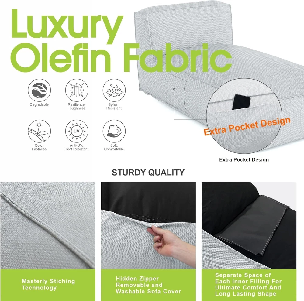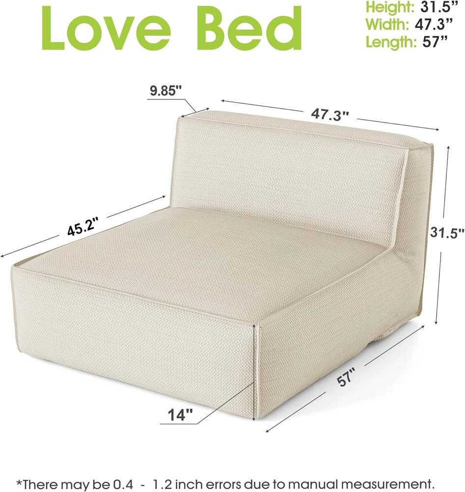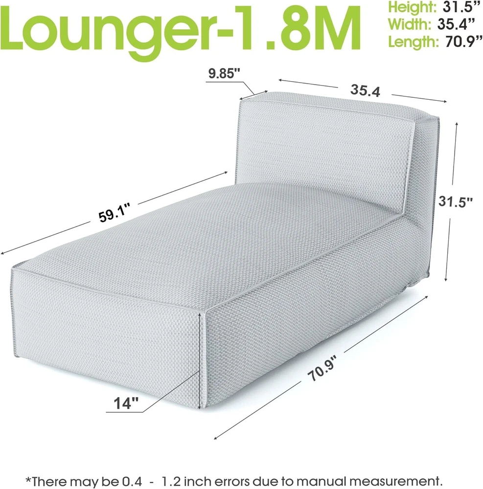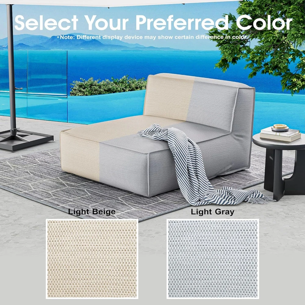 Comfortable Patio Cozy Reclining Lounge Chair : The minimalistic design outdoor 2 person recliners looks modern and elegant, delivering a comprehensive outdoor lounge experience. The chaise lounges compact structure and beautiful texture can surprisingly highlight your patio, poolside, balcony, deck, backyard, garden, beach, lawn etc This yard chairs featuring the Water : Repellent Olefin fabric. This synthetic material is recyclable, stain-resistant, lightweight, and robust, ensuring this beautiful 2 person reclining chair to endure season after season. The patio recliner design with side pocket to store personal items like phone, glasses, books, magazine , etc. All things arm reach Super comfortable : 2 person Pool lounge chairs outdoor bed filled with high-class foam that ensures superb relaxation whether sitting or lying down on this outdoor deck chair. The foam's exceptional point elasticity evenly distributes body weight across the surface for consistent support. The chaise lounge chair coupled with a 10.2" thick backrest and 14" cushion, our modern, minimalistic outside lounge chairs design enhances any outdoor setting, creating a harmonious blend of elegance and coziness with this backyard furniture Our modular design 2 person patio loungers is a revolutionary take on the classic bean bag design. Unlike traditional bean bags filled with beans or plastic balls, our lounge chairs are ingeniously packed with expansion foam. For convenient shipping , the foam is compressed into air-tight bags, significantly reducing volume. Once you receive your LuxFoam backyard chairs , simply open the sealed bags, and watch as the foam magically expands to its full size. The offers not just a seat, but an experience of comfort and sophistication Effortless Maintenance : Experience the convenience of our removable soft-to-the-touch covers, designed for easy cleaning. Beach chair lounger comes with zippered, machine washable cushion cover of pool loungers is ideal for busy homeowners and commercial hospitality environments. The Olefin fabric is not only durable but also quick-drying and simple to care for The new lounge patio chaise lounge chair come with clear instructions to make assembly a breeze. If you have any questions about products, feel free to contact us by Amazon message, we will provide satisfied service for you Payment 1. Payment should be completed within 3 (Three) days of auction closing. Or unpaid dispute will be filed for closing auction automatically. 2. If for some reason there is any issue with the payment, please contact us, and we will be glad to work with you to have it resolved. Shipping 1. Package handling only takes 3 business day at our warehouse, so please make sure entering correct payment and shipping information before checking out. 2. According to eBay policy, we only ship to eBay ADDRESS. Once your payment is completed, you can leave eBay note or click the button named “contact seller” in your purchase history if the changes are needed before we send the product. 3. If an address change is needed after sending your item, you will be responsible for any fees associated. 4. Orders placed on weekend will be shipped within 3 business days. Terms of sales 1. All of our items come with a 30-day return policy. We ensure all our items are new and in excellent condition prior to shipping. In the event that you receive the item that is not to the standards above, please contact us via eBay messages. All returns should be shipped with delivery confirmation.New items must be returned unused, undamaged, in the original packaging. 2. Please note that all returns must be pre-approved by us. Unauthorized returns will not be accepted. If you need to return, please check twice to confirm the item not work and contact our customer service representative, let us know the detailed problem and send us some pictures for confirmation. 3. All NON-seller mistake returns for refund are subject to 20% re-stocking fee and buyer should pay for the round-trip shipping fee. (E.g. you bought wrong model or wrong color). 4. We ONLY accept the return for original package. Please make sure that item has NO man-made sabotage. Used items will not be accepted for return. 5. We reserve the right to refuse any returns for objective reasons. Feedback 1. If you are satisfied with the product you received, please leave us positive feedback and 5 star comment, which will be highly appreciated. 2. If there is any problem about your order, please contact seller prior to leaving feedback, and we will be glad to work with you to have it resolved. 3.If you are dissatisfied for any reason, please do not be quick to leave negative or neutral feedback. We’ll try our best to resolve any problem for you to make EACH CUSTOMER 100% SATISFIED and always leave positive feedback to all our customers. Contact us 1.Before purchasing, you can contact us directly by clicking "Ask a Question" at bottom of this page. 2. After purchasing, you can contact us by clicking the button named “contact seller” in your eBay purchase history. 3. We will answer your question within 24 hours(except Holiday). FAQ Q: How do I pay for my purchase? A: We only accepts the payment method Paypal. Q: When will the item be shipped out? A: The item will be shipped within 3 business day once payment completed. Q: Where is my tracking number? A: Some of our parcels are shipped with tracking <, and u could check it as the following steps: Please log on your account. Click ”my eBay”----->”My Summary” or open your emailbox and find the shipping notification email. Q: How do I return an item? A: We accepts returns. Item must be returned within 30 days. You will be refunded within 5 working days of receiving your money back:The returned goods have been received. Please contact our customer service before you return an item.