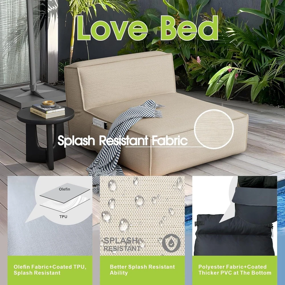 Super comfortable: 2 person Pool lounge chairs outdoor bed filled with high-class fo Type: Recliner Item Height: 31.5 in Item Length: 47.3 in Comfortable Patio Cozy Reclining Lounge Chair: The minimalistic design outdoor 2 person recliners looks modern a This yard chairs featuring the Water: Repellent Olefin fabric. This synthetic material is recyclable,st Effortless Maintenance: Experience the convenience of our removable soft-to-the-touch cov Brand: Unbranded Item Width: 57 in