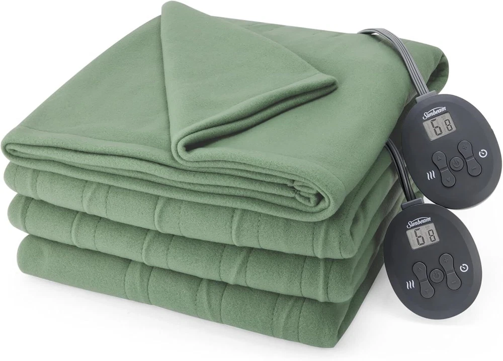 About this item 100% Polyester USER-FRIENDLY DESIGN: Electric blanket with digital controller and LED backlit blue display for easy viewing at night CUSTOMIZABLE WARMTH: 12 Heat settings allows you to select your ideal warmth level SAFETY FIRST: 12-Hour selectable auto shut-off and overheat protection for added peace of mind COMFY AND COZY: Comfy and cozy royal ultra fleece fabric for warmth and comfort, 100% high-quality polyester STYLISH COLOR: Matcha green color compliments your décor, great for your home or an ideal gift for family and friends