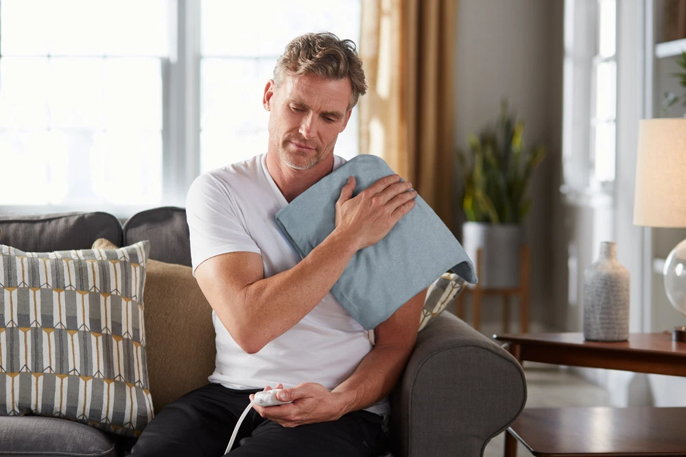 This Sunbeam® Standard-Size Heating Pad delivers soothing heat therapy for common muscle pain and joint pain. The 12 x 15-inch pad covers most muscle groups to help accelerate tissue healing and relax sore muscles associated with muscle tension and stress. Customize treatment with 3 heat settings. Enjoy convenient features such as an easy-to-use slide controller designed for those with arthritis pain, a long 9-foot cord for added convenience, and spray fabric cover with water for optional deep, penetrating pain relief. The vinyl hot pad has a soft, machine washable cover for easy care. Pain Relief: 12 x 15-inch Sunbeam heating pad provides soothing heat therapy for common muscle and joint pain Clinically Proven: Heat is clinically proven to relieve pain associated with muscle tension and stress High-Level Heat: Heat increases blood flow to accelerate tissue healing and relax sore muscles associated with muscle tension and stress Arthritis-Friendly Slide Controller: Customize treatment with 3 heat settings using the large slide button controller, specially designed for those with arthritis pain Convenient Features: Long, convenient 9-foot cord Moist Heat Option: Spray fabric cover with water for deep, penetrating pain relief Easy Care: Vinyl pad has a soft cover that's machine washable and dryer-safe HSA/FSA Eligible UL Certified, FDA registered Class II Medical Device