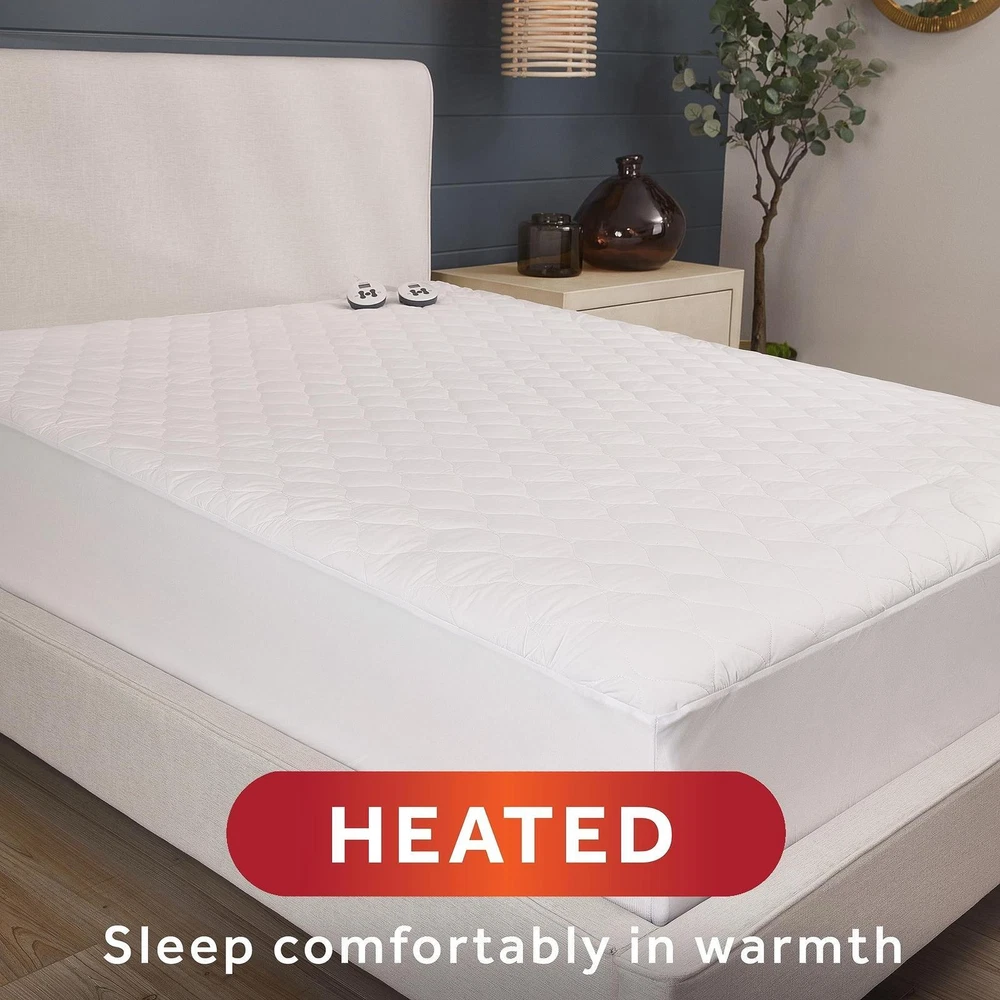 Sunbeam Restful Quilted Water Resistant Heated Mattress Pad - Queen White