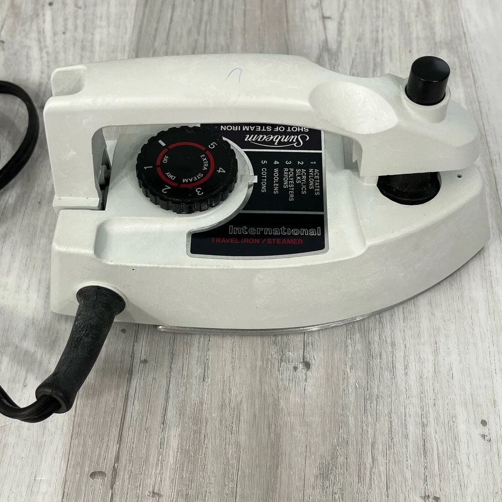 Sunbeam Shot Of Steam Self Clean Travel Iron 10069 Travel bag is stained which can be seen in pictures Some light scuffing on iron