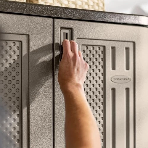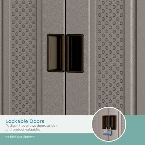 The Suncast Storage Cabinet in Platinum is a versatile and durable solution for organizing tools, toys, equipment, and other household items. Crafted with double-wall resin construction, this cabinet is resistant to rust, warping, and dents, ensuring reliable performance in any environment. Its sleek platinum finish adds a modern aesthetic, making it suitable for both garages and utility rooms. Designed with three metal-reinforced shelves, each capable of supporting up to 75 pounds, this outdoor storage cabinet offers sturdy storage for heavy and bulky items. Measuring 20.25" D x 30" W x 72" H, it provides ample storage capacity while maintaining a compact footprint, making it perfect for small spaces or corners. The cabinet’s functional design and durable build make it a dependable and stylish addition to any organized space. TALL STORAGE CABINET: This freestanding base cabinet offers a practical storage solution for organizing toys, tools, equipment, and other household or garage items, keeping your space clean and clutter-free DURABLE CONSTRUCTION: Built with double-wall resin panels that resist warping, rusting, and denting, this tall outdoor storage cabinet is engineered to withstand tough conditions in both indoor and outdoor settings MODERN AND FUNCTIONAL DESIGN: The sleek platinum finish enhances any space with a contemporary look, while its compact yet functional design fits neatly into corners or against walls HEAVY-DUTY REINFORCED SHELVING: Features three metal-reinforced shelves, each capable of supporting up to 75 lbs., making it ideal for storing a variety of items, from heavy tools to bulky household supplies SPACIOUS YET SPACE-SAVING: Measuring 20.25" D x 30" W x 72" H, this outdoor garage storage offers ample storage space without dominating your floor plan, making it a versatile addition to any storage area