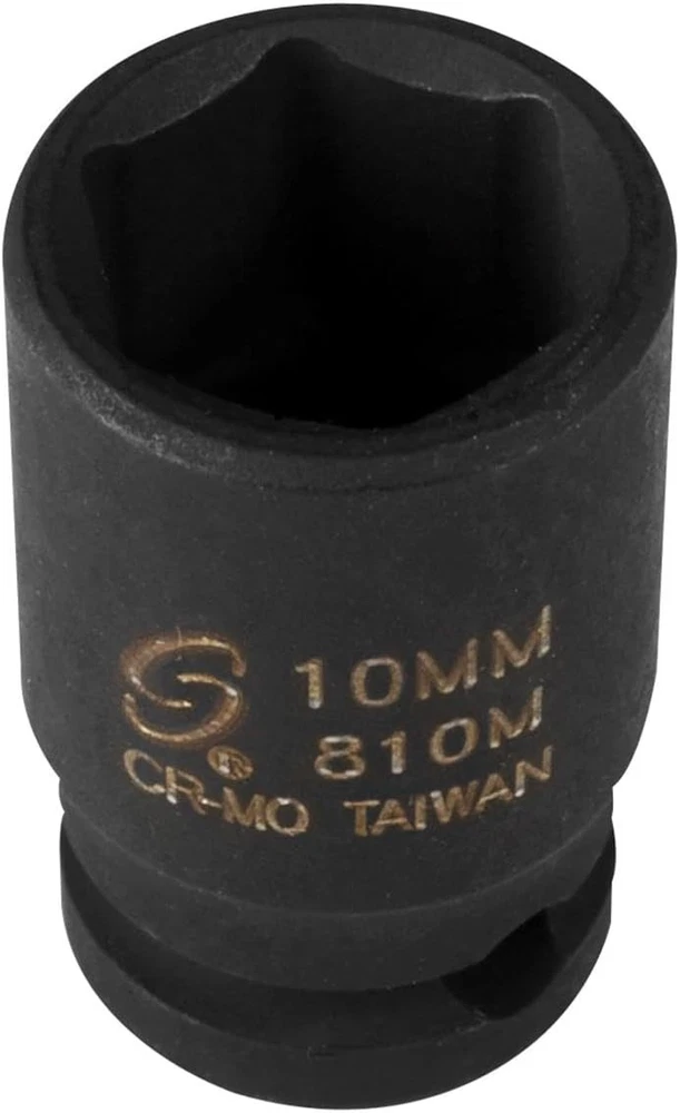 Sunex 810m 1/4-Inch Drive 10-Mm Impact Socket One Size Product Details Brand: Sunex Tools Material: Chrome Molybdenum Steel Finish Type: Painted Number of Pieces: 1 Manufacturer: Sunex International Part Number: SU810M Item Weight: 0.48 ounces Product Dimensions: 0.5 x 0.4 x 0.6 inches Country of Origin: Taiwan Item model number: 810M Is Discontinued By Manufacturer: No Size: One Size Finish: Painted Item Package Quantity: 1 Number of Handles: 1 Compatible Fastener Range: 0.25 inches Batteries Included?: No Batteries Required?: No Brand: Sunex Tools Material: Chrome Molybdenum Steel Finish Type: Painted Number of Pieces: 1 Forged from the finest chrome molybdenum alloy steel-the best choice for strength and durability Radius corner design - to extend the life of fasteners The design drives the side of the fastener instead of the corner 1/4-Inch drive 10mm impact socket No doubt, the strongest impact socket line around. Sunex Tools impact sockets tackle the toughest jobs with a chrome molybdenum alloy steel grip that won't let go. With solid durability that keeps them driving through job after job, we've got sizes and styles enough to fulfill any need.