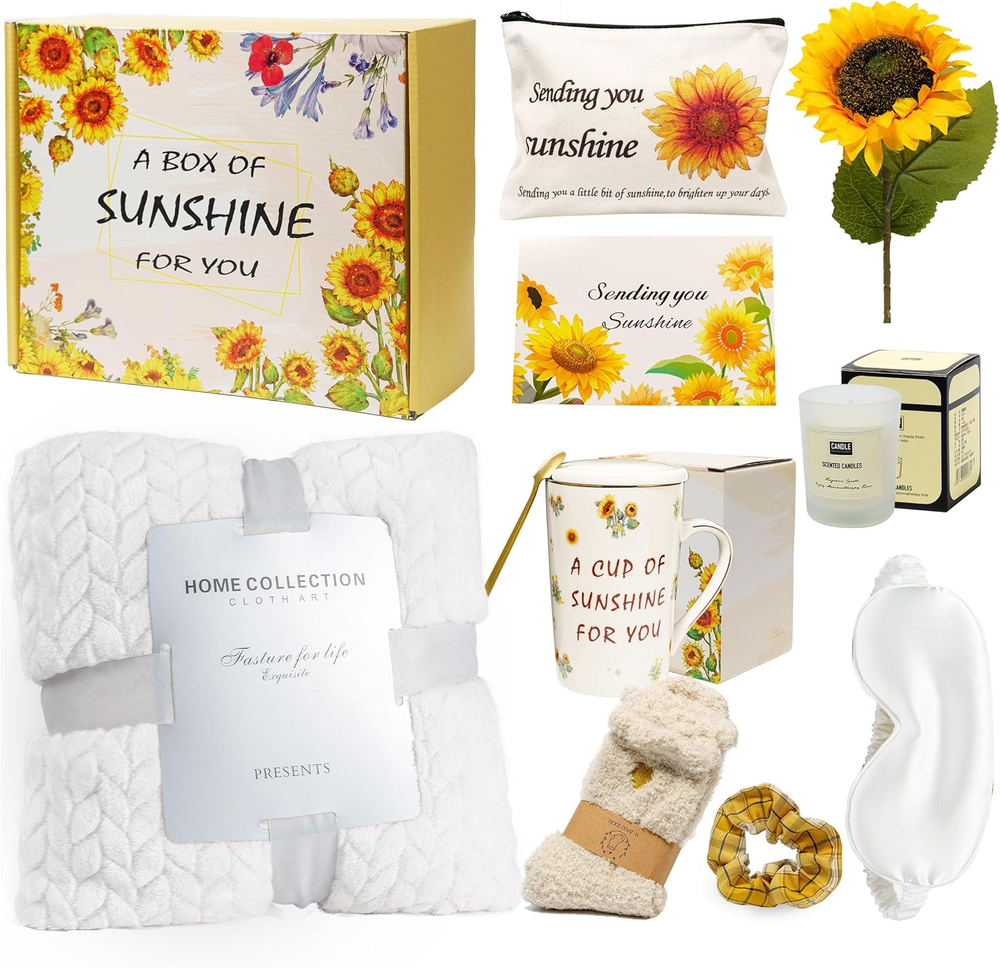 Menu Other Items Feedbacks About Us Contact Us Add To Favorites Sunflower-Themed Encouragement Gift Box for Women - Self Care Package with Ultra Soft Flannel Blanket, Best Friend Birthday, Thinking of You Gifts for Her (Luxury Ready-To-Give) đť A Thoughtful Gift Bursting with Warmth & Joy This curated gift basket celebrates health, positivity, and happiness â a radiant way to brighten her day! Each sunflower-themed item whispers "you're cherished," wrapped in cheerful yellow packaging that sparks instant smiles. ⨠8-Piece Sunshine Collection From the ultra-soft 39"x59" snuggle blanket to the breathable silk sleep mask, every piece radiates comfort. Includes: aromatic soy candle, golden coffee spoon, "Cup of Sunshine" mug, faux sunflower bouquet, plush socks, daisy hair tie, cosmetic pouch, and heartfelt greeting card â all nestled in a keepsake box. đ More Than a Gift â A Hug in a Box No words needed. The moment she lifts the lid, your love shines through! Perfect for saying "Iâm proud of you," "You inspire me," or simply "You deserve sunshine" on birthdays, anniversaries, Motherâs Day, or "just because" moments. đ Ready to Impress, Always Remembered Luxury meets practicality: The reusable storage box doubles as a vanity organizer. Bonus tip: Light the candle together to create a memory that glows long after the celebration. đ Why Sheâll Adore It We skip generic drugstore items â every piece feels intentional, from the dermatologist-approved eye mask to the smudge-proof mug design. Plus, our 100% happiness guarantee: If her smile isnât brighter, weâll make it right. Product description The Language of Sunflowers Brighten someone's journey with nature's most uplifting symbol. Why This Gift Resonates: ⢠Embodies hopeful energy and steadfast optimism ⢠Celebrates personal growth through life's seasons ⢠Honors resilience during challenges or transitions Perfect For: Motivating goal-focused achievers,Uplifting spirits during recovery periods,Celebrating academic/professional milestones,Expressing heartfelt admiration Crafted With Care: Our artisan-curated basket pairs vibrant sunflower arrangements with practical luxuries, creating lasting emotional impact. Each element whispers: "Your strength inspires me." Hello Sunshine Gift Box (1) Fortune-Inspired Ceramic Mug (1) Flannel Blanket (1) Silk eye mask x 1 Aromatherapy Soy Candle (1) Plush Comfort Socks (1Pair) Makeup Organizer (1) Lifelike Sunflower (1) Sunflowers arenât just flowersâtheyâre happiness warriors! Bold, bright, and unapologetically cheerful, these golden blooms whisper: "Chase your light, own your strength!" Our curated basket turns that symbolism into tangible love â perfect for celebrating her grit through lifeâs storms. Ultimate Squad Goals Energy This isnât a "get well soon" card. Itâs a battle cry wrapped in sunshine: "Youâve got this!" vibes for post-surgery recovery "Crush those goals!" energy for graduation/new job wins "Queen behavior!" reminders during self-care slumps Survival Kit for Badass Women We packed practical magic:Silk eye mask = "Rest, then conquer", "Sunshine Mug" = "Fuel your spark", Fuzzy socks = "Comfort is power",5 more mood-boosting gems (including a secret pep-talk card) When to Unleash This Sunshine Bomb:,Sheâs juggling 3 jobs + night school,Post-chemotherapy glow-up mission,"Why adulting?!" meltdown rescue,Just because she deserves confetti days Item Specification Reusability Reusable Unit Count 1.0 Count Style Fine Number of Items 1 Included Components Cups Color Yellow Pattern Floral Item Weight 3.23 pounds Theme Holiday Material Feature Porcelain Department Womens Material Porcelain Capacity 1.82 Pounds Special Feature Manual Product Dimensions 11.4"W x 5.11"H Size Large FREE SHIPPING We are always working hard to ensure your package arrives as soon as possible. Please understand that some factors like weather, high postal traffic, and the performance of shipping companies are outside of our control. We offer free shipping to the lower 48 states. We do not accept P.O. Boxes. Please provide a physical address. If you have a problem or question regarding your transaction please contact us immediately. We will work with you to resolve any problem you may have. Thank you