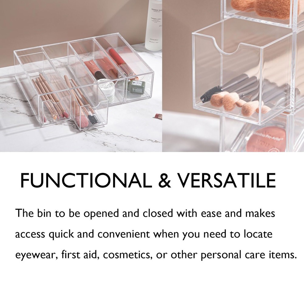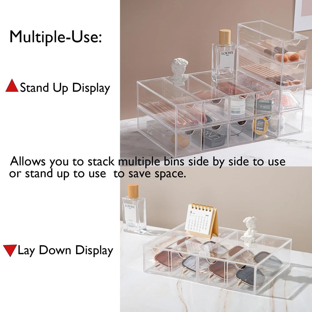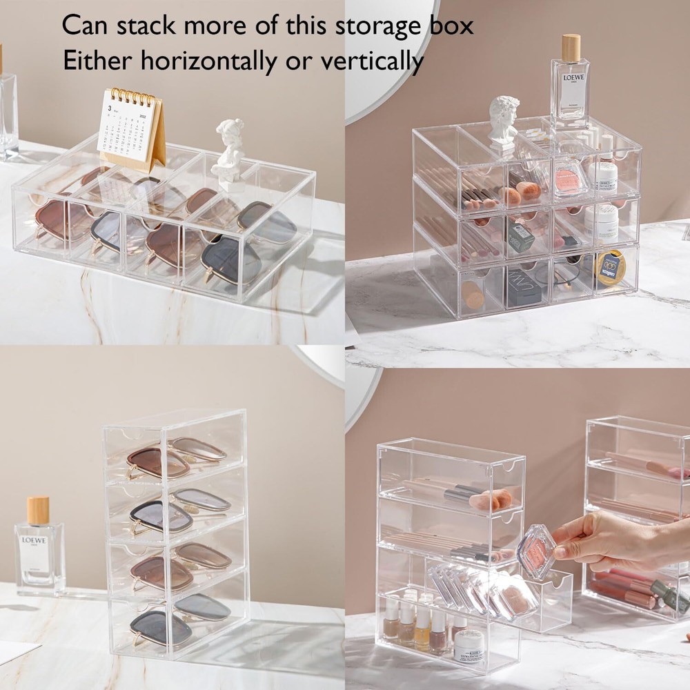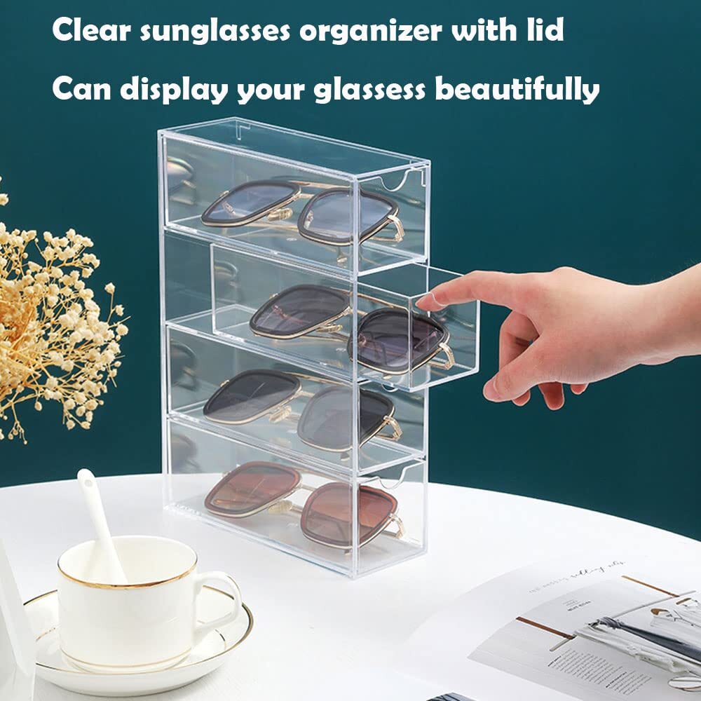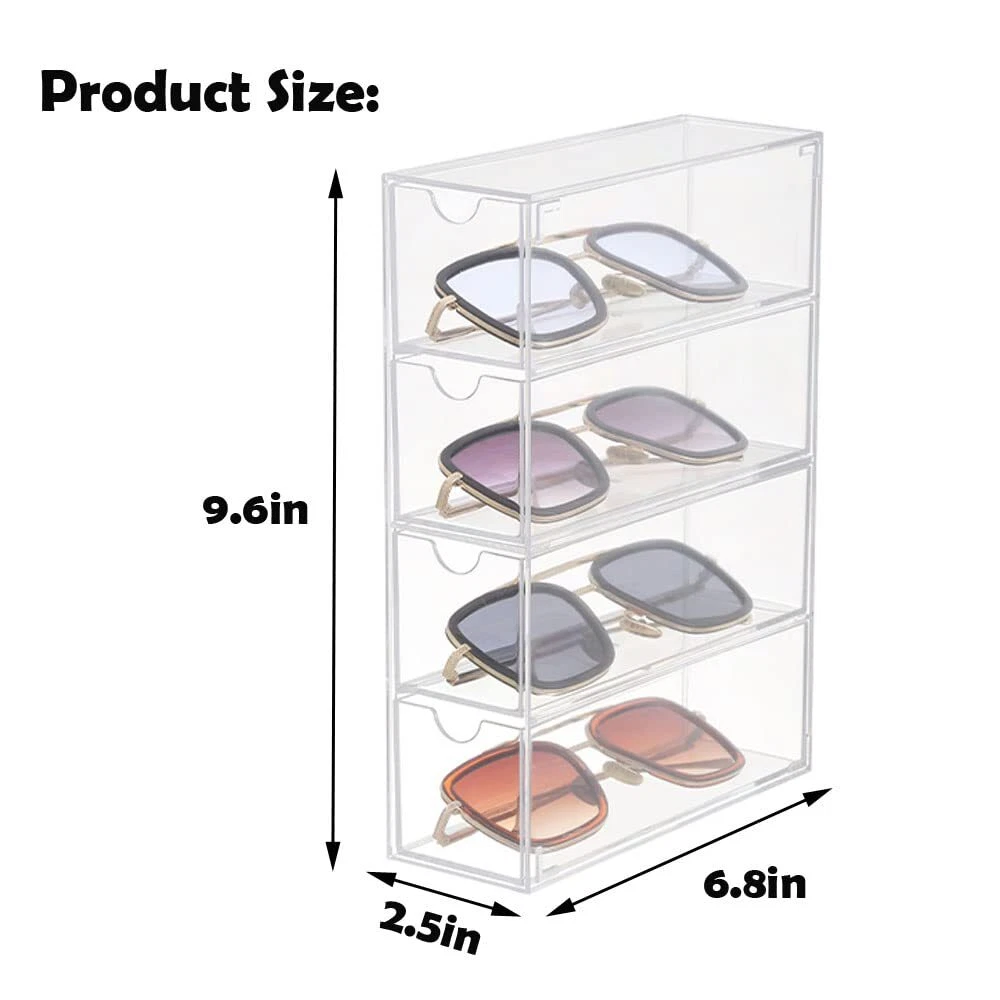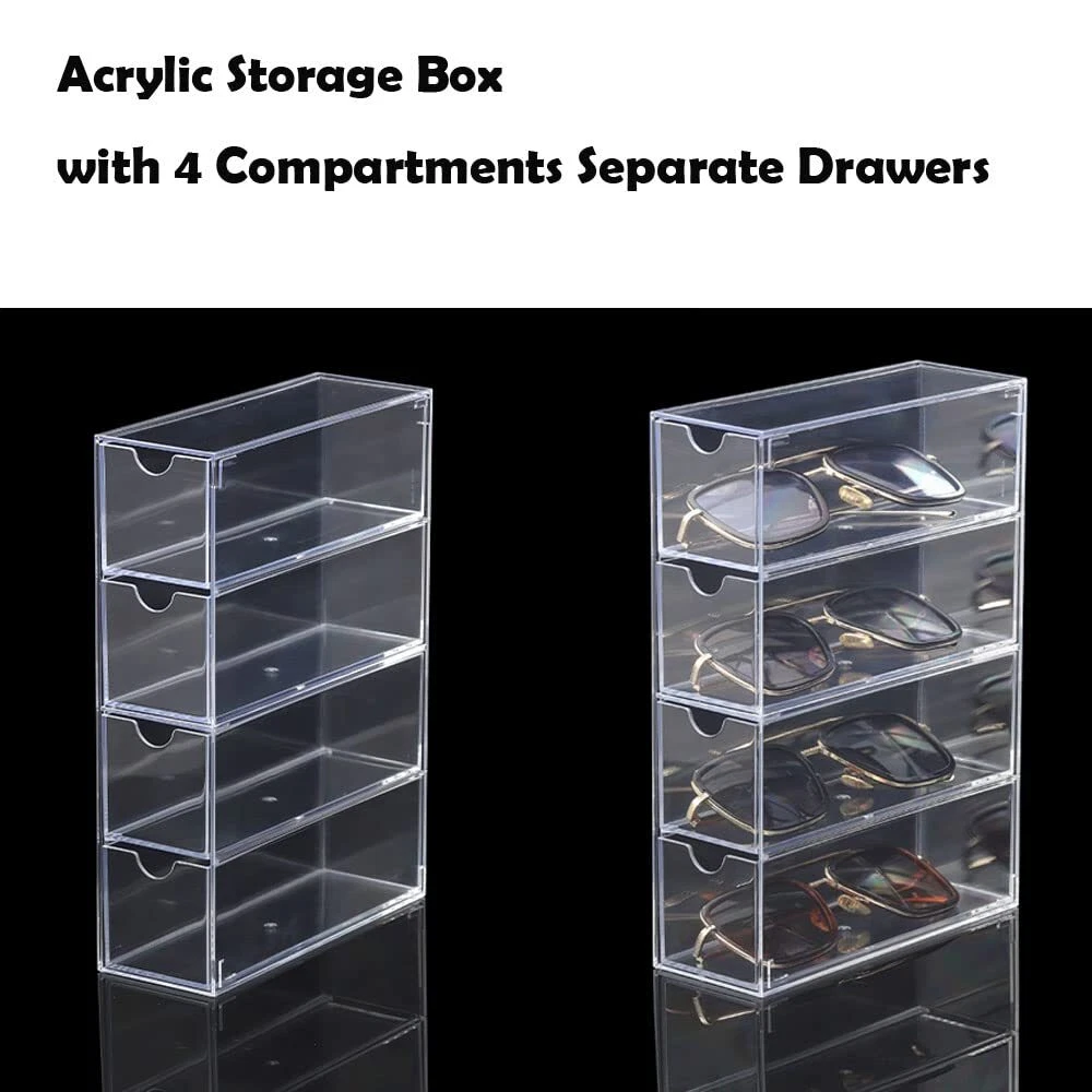 Sunglass Storage Box, Acrylic Eyeglass Organizer, Make-up Storage Drawer Tray, Jewelry Trays, Type Strong Load-bearing Easy Access 4-Layer Transparent Visual Sunglasses Case Home Office Using Material: 100% Acrylic, Measures: 2.5" x 6.8" x 9.6" high. Adjustable Direction, Drawer Type, Strong Load-bearing. Easy access and smooth pulling, and transparent visual design. Lidded Storage Bins with 4 slot sunglasses premium grade clear acrylic display case, perfect for using in a wide range of home and commercial decors. Stackable Design: Can be stacked or used side by side according to your needs. glasses organizer can be used vertically or horizontally, just flip the drawer to create a custom storage solution that works for you. Small and compact, saves desktop space, and the drawer design is easy to open. You can store and display your sunglasses, glasses, jewelry, makeup, stationery, accessories and more. With 4 layers of high capacity and strong load bearing, Perfect using for bathroom, laundry, utility room, home office, craft room, kids room, bedroom, closet, vanity and more. Also great for small-space living in dorms, apartments, condos, RVs, campers, boats, and cabins. Our multiple bins can help you categorize and separately store your sunglasses, reading eyewear, also store other items like first aid, cosmetics or office supplies, so you always find what you need when you need it. Package Includes: 1 x Storage Box (Glasses not included) Shipping We offer FREE shipping on all orders! We ship within Three business days of payment, usually sooner. We use a selection of shipping services such as UPS, FedEx, USPS etc. We only ship to the lower 48 states, no APO/FPO addresses or PO Boxes allowed. Local pickups and combined shipping options are not provided at this time. Return You can return a product for up to 30 days from the date you purchased it. Any product you return must be in the same condition you received it and in the original packaging. Please keep the receipt. Payment We accept payment by any of the following methods: PayPal Please pay as soon as possible after winning an auction, as that will allow us to post your item to you sooner! Feedback Customer satisfaction is very important to us. If you have any problem with your order, please contact us and we will do our best to make you satisfied. Contact Us If you have any queries, please contact us via ebay. We usually respond within 24 hours on weekdays. Please visit our eBay store to check out other items for sale! Thank you for shopping at our store.
