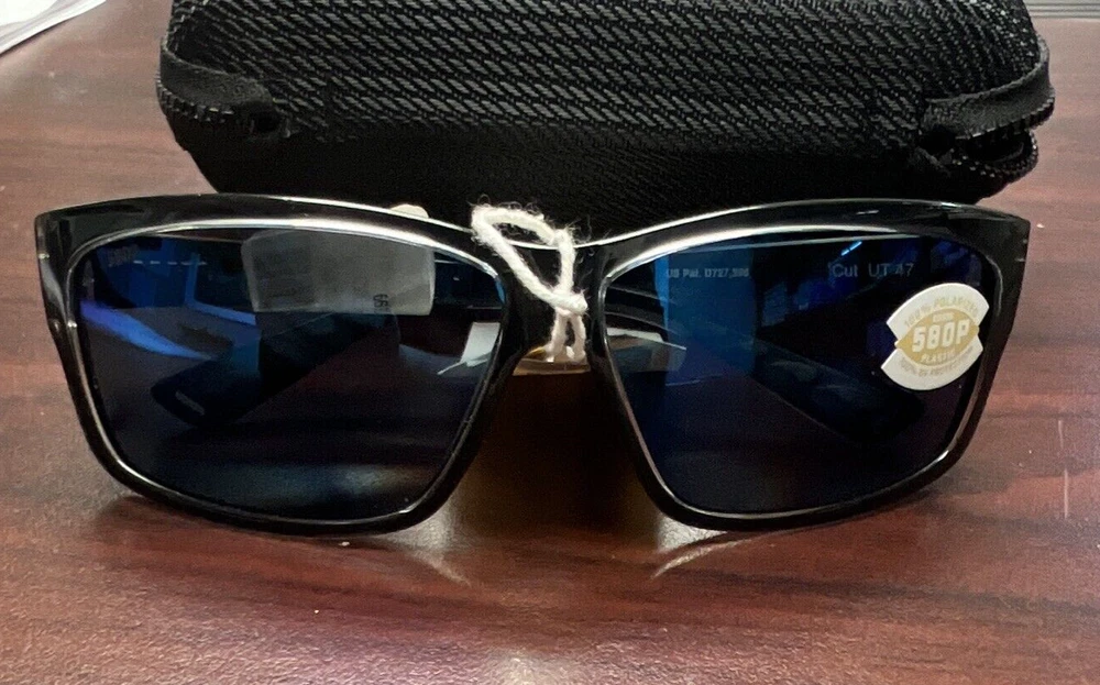 This sale includes 1 pair of Costa Del Mar Cut Blue Mirror 580P Squall Frame May have retail sticker on glasses. New Condition, no box. Includes zip case as shown. Details Lens Width (mm) 60.6 mm Arm Length (mm) 130 mm Lens Height (mm) 39.6 mm Lens Bridge (mm) 11.5 mm Series Number UT 47 Color Code OBMP Lens Type Polarized Lens Polarized Blue Mirror Plastic (580) UV Protection 100% UV Protection Rim Style Full-Rim Frame Shape Rectangular Collection Name Cut Brand Costa Del Mar Gender Unisex Model UT 47 OBMP UPC Code 097963533027