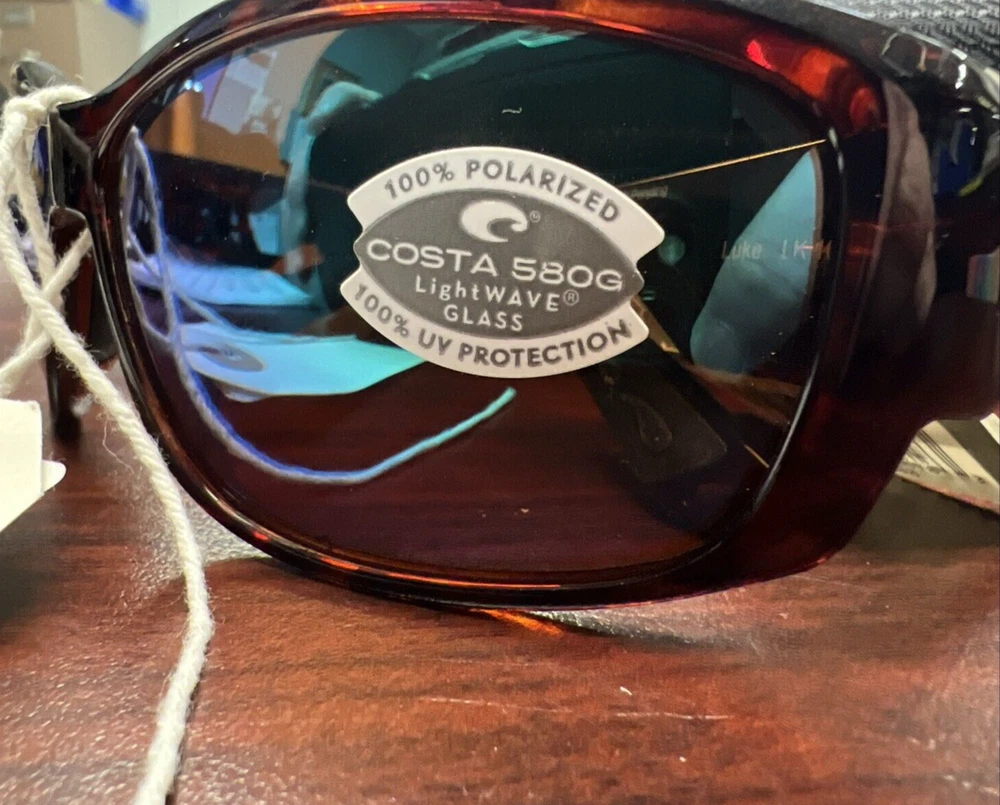 This sale includes 1 pair of Costa Del Mar Luke Green Mirror 580 Glass Lens w/ Tortoise Frame May have retail sticker on glasses. New Condition, no box. Includes zip case as shown. Brand: Costa Del Mar MPN:LK 10 OGMGLP UPC: 097963525763 Model: Costa Del Mar Luke Frame Color: Tortoise Lens Color: Green Mirror 580Glass Temple Length: 126 mm Lens Technology: Polarized UV Protection: 100% UV Protection Department: Men Type: Sunglasses Lens Material: Glass Mirror Frame Material: Plastic Style: Wrap Personalized: No Features: Lightweight
