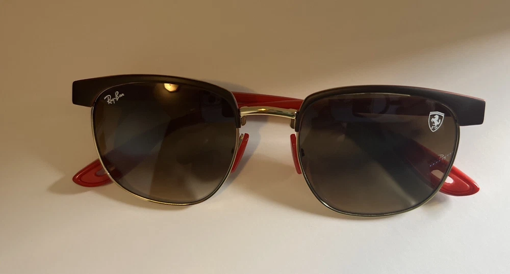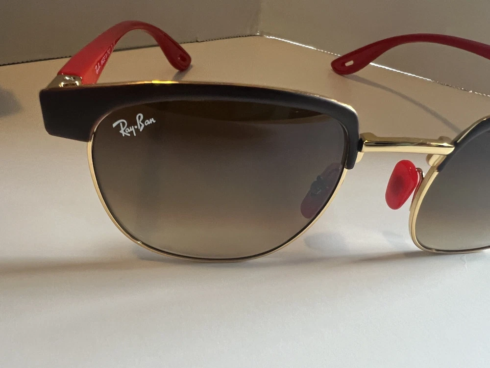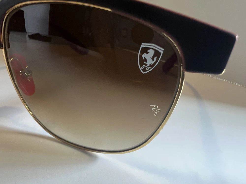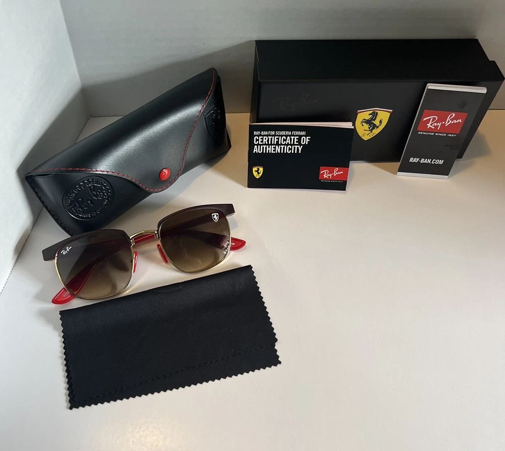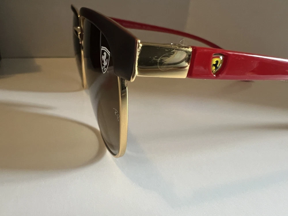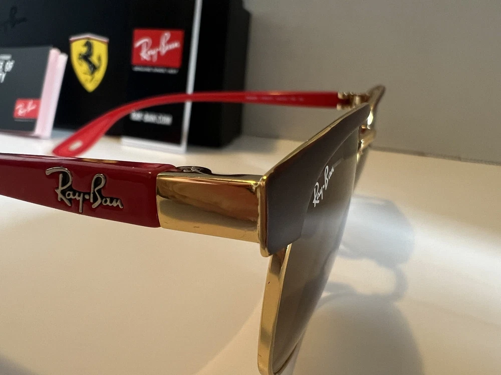 Elevate your style with these sleek Ray-Ban Ferrari Scuderia RB3698 sunglasses. Made in Italy, these unisex adult sunglasses feature a gold/red frame and brown polarized glass lenses. The round shape and metal frame material add to the timeless appeal of these sunglasses. Perfect for any occasion, these sunglasses are a must-have for any fashion-forward individual. With a brand like Ray-Ban and a model like Ferrari, you know you're getting a high-quality product that will last. Upgrade your collection with these stylish sunglasses today. Frame Color: Gold/Black Frame Material: Metal Lens Color: Brown Lens Technology: Normal Caliber: 53 mm Bridge: 20mm Rod: 145 mm ALL OUR PRODUCTS ARE NEW AND ORIGINAL. THE PRODUCTS ARE ALWAYS SHIPPED IN THE ORIGINAL CASE AND WITH ALL ACCESSORIES.