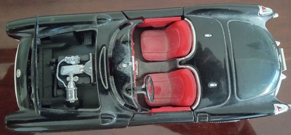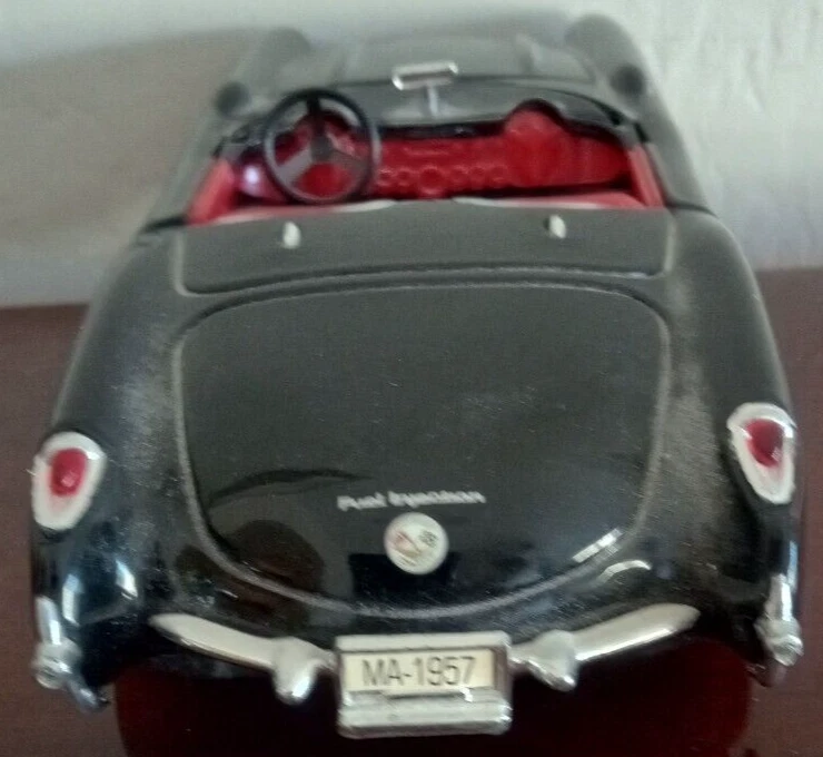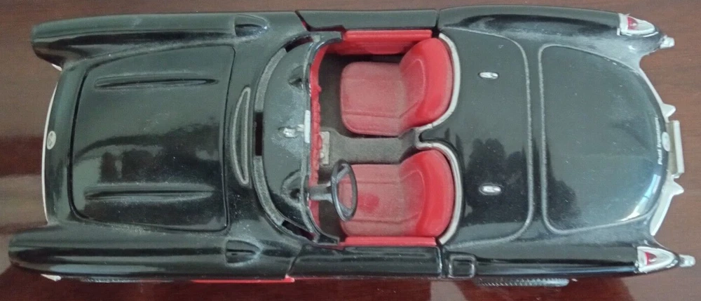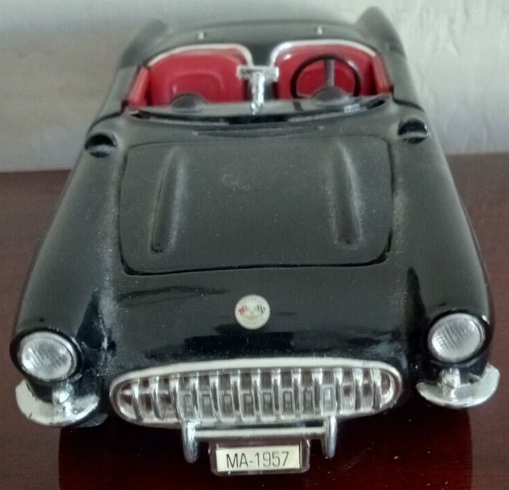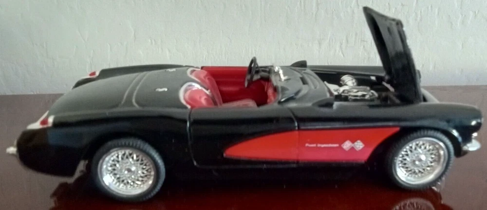 This is a beautiful and detailed 1957 Chevrolet Corvette model car from Sunnyside LTD. The car is made of high-quality diecast material in a 1:24 scale. The black and red color combination makes it a stunning addition to any collection. This car is part of the Sunnyside LTD series manufactured in China. It is suitable for boys and girls and would make a great gift for any car enthusiast. This model car is not customized and is not autographed. It is a must-have for any fan of classic cars and diecast collecting. This example comes without the box.
