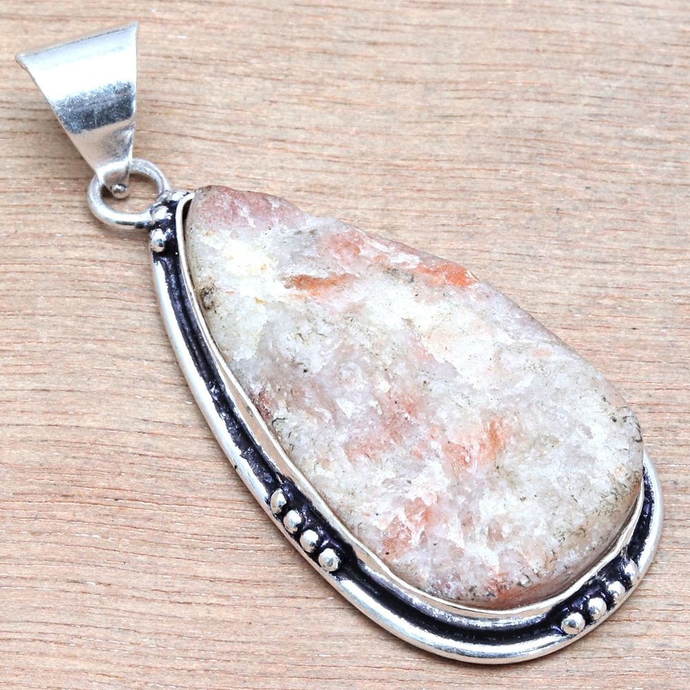 Pendant Rock Calsi Gemstone Valentine'Day Gift Silver Jewelry 2.25"