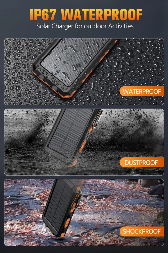 Size: 138*76*19MM Solar P anel: 1.2W I nput voltage: DC 5V 1A Output 1: 5V 1A Output 2: 5V 2.1A Weight:250g How to use the flashlight: You may once to open the power bank, the indicator light will be on, and then double-click twice continuously to open the light mode, then changing the light mode by clicking once. and close the light mode by double-clicking twice continuously.
