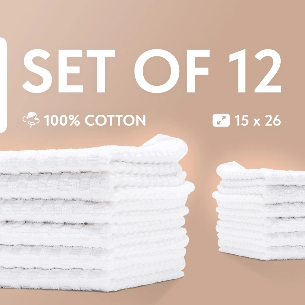 Super Absorbent 12-Pack Premium Cotton Kitchen Towels for Dishes & Cleaning