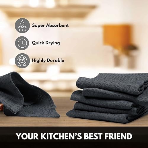 Super Absorbent Gray Waffle Weave Kitchen Towels Set of 4