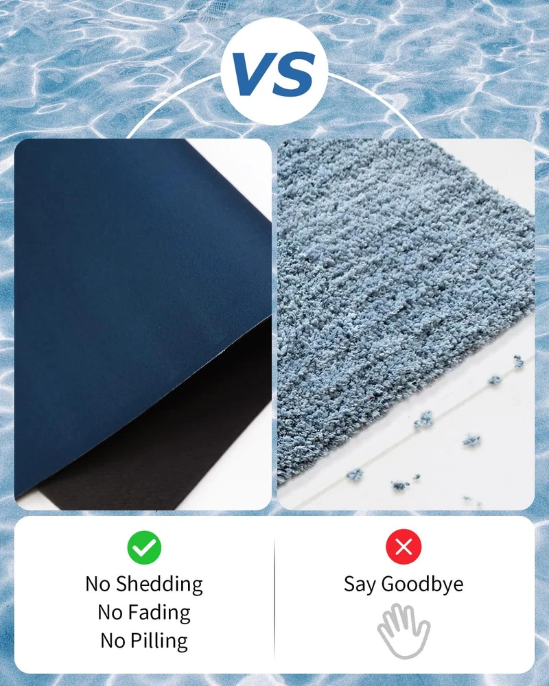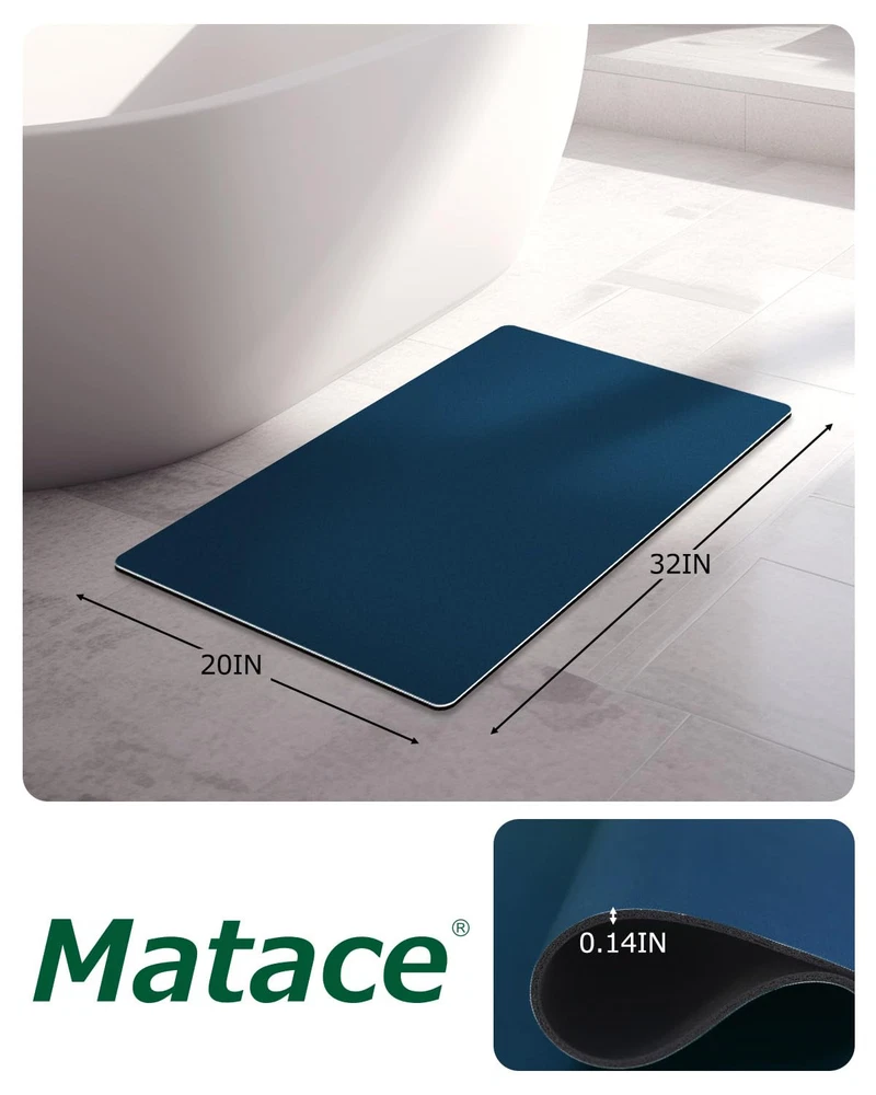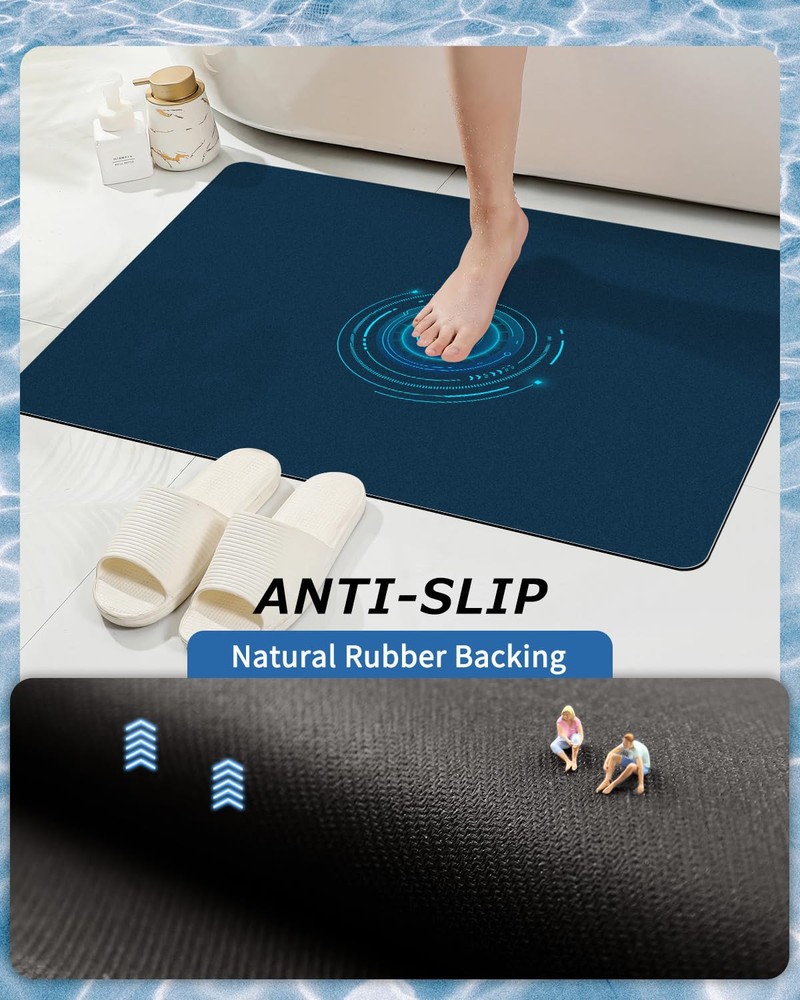 【Strong Water Absorption】This is a soft diatomaceous earth bath mat with advanced nano technology. When you come out of the bath or shower room, our bathroom rug can absorb moisture from the wet feet immediately, keep the floor clean and dry. 【Quick Drying】Due to countless tiny pores on the surface of the quick dry bath mat , it will absorb water immediately and watermarks can magically disappear in 1 to 3 minutes. The moisture stored in the tiny pores can evaporate quickly . 【Anti-Slip Bottom & No Risk of Tripping】non-slip rubber backing of the bath rug for bathroom helps to increase the friction with the ground, it can grip on wet and smooth floor tightly. This rubber backed bath mat minimizes the risk of slipping in children and the elderly. 【High Quality & No shedding】Our super absorbent bath mat is made of technical velvet, which surface is very soft and smooth. Unlike traditional chenille rugs for bathroom, our bathroom floor mat is more durable and will not have problems of shedding and fading. 【Dirt Resistant & Easy to Clean】The smooth surface design helps to resist dirt and hair. It only needs to be cleaned with running water, or simply wipe the washable bathroom rugs with a brush or sponge and wet cloth.