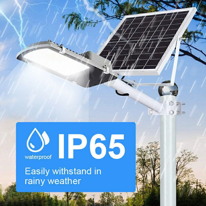 Product Description Super Bright Commercial Solar Street Light Dusk to Dawn Road Lamp+Pole+Remote Specifications: ★【Super Bright】 Equipped high quality 2835 SMD LED beads;Provides over 150w light 15000 Lumens of brightness and reaches 200-300m² illumination range ;No struggle to see in dark places;Built-in 3.2v-13.5Ah large capacity lithium battery with a long life of 50,000+ hours;Working time is up to 20 hours after 4-6 hours fully charged,about 72 hours in dim mode.;Long-lasting and highly efficient solar panels,fast charging and high conversion rate ★【Dusk to Dawn Sensor & Remote Control】 Built-in smart sensor,lights will turn on automatically at dusk, and turn off at dawn. Upgraded Remote Control -ON/OFF Function;Auto Mode- automatically lights up at night,automatically turns off during the day;Timing function-3H,5H,8H ;.Full / Half brightness mode;Brightness increase /decrease mode; ★【Easy to Install】 The kit contains the installation accessories set. You can effortlessly mount them on a tree, pole, balcony, wall, or any desired outdoor spot. These solar powered street lamps can be instantly mounted as long as there is a wall or a pole. ★【Durable&Sturdy&Maintence-free 】 Thickened die-cast aluminum case;IP65 waterproof rating; Dust-proof, rust resistant, corrosion resistant, and bad weather resistant; Designed to withstand any severe weather condition, including snowstorms and hurricanes, ultra reliable;Cost savings;No need to run pesky wires under your lawn, and no batteries that need replacing at the most inconvenient times.Safe-less risks of fires and burns; Environmentally friendly; ★【Widely Used】 Ideal for Plaza, Park, Garden, Courtyard, Street, Walkway, Pathway, Campus, Farm, Perimeter Security etc;Also can be used in Urban roads, industrial areas, residential areas,Elegant design,it will add a nice touch to your outdoor space;an excellent choice for any outdoor Package Content Per Box: 1 x Solar Lamp 1 x Solar Panel 1 x Remote Control 1 x Accessories; Notice: Please allow 1-3cm error due to manual measurement and make sure you do not mind before ordering. Please understand that colors may exist chromatic aberration as the different placement of pictures. Versand Payment We accept payment via Paypal only. Payment must be completed within 10 days. If you have any problems about payment, please contact us via ebay message. Delivery details We only ship to confirmed Paypal addresses. Please comfirm that your paypal address is in line with your shipping address. Please kindly note that the c ombined shipping is not provided because the shipping fee is calculated by weight. Also, the each additional item means exactly the the same color and size. It takes about 7 -15 working days to US; about 10-30 working days to other countries. Transit time may be a little delayed because of the bad weather and customs inspection . If you do not receive your item within 30 working days since payment finished, please contact us immediately for further assistance. Contact us We strive for 100% customer satisfaction! Positive Feedback is very important to us. If you have any questions, p lease feel free to contact us via "Ask seller a question" . We will reply your email within 24 working hours. Versand Payment We accept payment via Paypal only. Payment must be completed within 10 days. If you have any problems about payment, please contact us via ebay message. Delivery details We only ship to confirmed Paypal addresses. Please comfirm that your paypal address is in line with your shipping address. Please kindly note that the c ombined shipping is not provided because the shipping fee is calculated by weight. Also, the each additional item means exactly the the same color and size. It takes about 7 -15 working days to US; about 10-30 working days to other countries. Transit time may be a little delayed because of the bad weather and customs inspection . If you do not receive your item within 30 working days since payment finished, please contact us immediately for further assistance. Contact us We strive for 100% customer satisfaction! Positive Feedback is very important to us. If you have any questions, p lease feel free to contact us via "Ask seller a question" . We will reply your email within 24 working hours. powered by