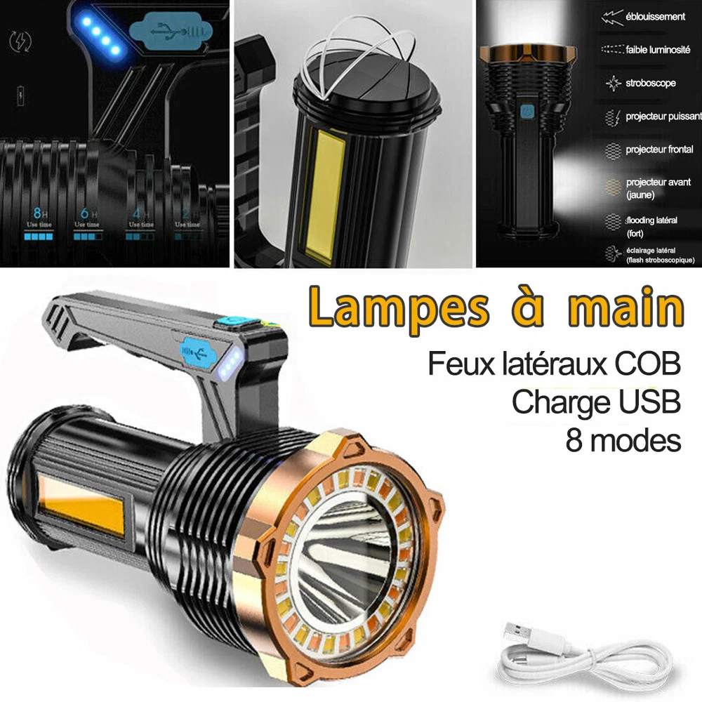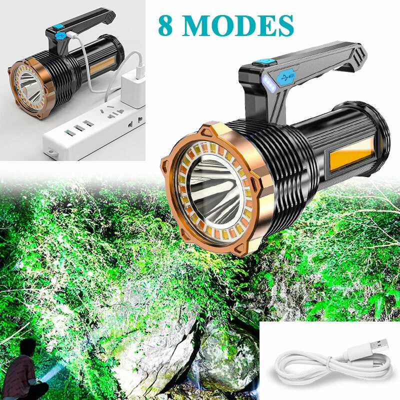Product Feature: Super Bright: High-intensity wick with more light. 8 Lighting Models: ①Main Light Highlight②Main Light Lowlight③Main Light Flash④Main Light+Auxiliary WhiteLigh⑤Auxiliary WhiteLigh⑥Auxiliary YellowLight ⑦Side WhiteLight⑧Side YellowLight. It can service as a front flashlight or turn on the side light as a table light. Waterproof: IP44, fully sealed body. No worries about rain and water, it can use for rain days, but can't use diving. USB Charging and Indicator Light: Charge by USB ports. Real-time power display (25%/50%/75%/100%) to keep track of battery power, and charging indicator function. Applications: Built-in rechargeable lion battery of 1200mAH. Perfect for camping, hiking, fishing, sailing, ride, outdoor, etc. Product Specification: Type:Handheld Flashlight Material:ABS Shell Color:Black Light Source:White Light/Yellow Light Endurance:3~10 Hours Size:155*75mm/6*3in Waterproof:IP44 Daily Life Waterproof (Can't Dive) Battery:Built-in Rechargeable Lithium Battery Capacity:1200mAH Power Display:25%/50%/75%/100% Charge:USB Cable (Included) Package Included: 1 x Rechargeable Handheld Flashlight (Built-in Battery Included) 1 x USB Cable 【USB rechargeable large-capacity】: flashlight rechargeable uses a 2000 mA large-capacity lithium-ion battery, Endurance 3~10 hours 。The small flashlights powerful can be charged by a power source such as a laptop computer, a car charger, a power bank, etc. is charged through a USB port. 【Small&light】: rechargeable spotlights handheld,rechargeable led flashlight, led flashlight with three brightness levels (high-low flash) on the front. The spotlight is a fixed focus, or turn on the side light as a table light. the led rechargeable flashlight for different situations to provide you with bright light. 【camping flashlight waterproof&anti-skid】: The powerful flashlights is made of high-quality ABS material. spotlight flashlight has anti-skid, explosion-proof, and shockproof functions. Enhanced waterproofing can prevent it from splashing water from all angles. flashlights for camping Suitable for outdoor environment, bad weather conditions. 【Practical Side Lights】: handheld light side floodlights are adjusted for different situations to provide you with bright lights so that your flashlight can be used in various scenes, camping lights, work lights, Inspection Light, desk lights. So that you can use it conveniently. 【Emergency flashlight】:flashlights for emergencies is suitable for family emergencies, car maintenance, typhoons, power outage maintenance, manual reading at night, evening walks, camping accessories clearance, hiking, adventure, and fishing. Led Flashlight Rechargeable USB Torch Tactical Light Super Bright Spotlight Handheld Portable Lamp with COB Side Searchlight High Lumens Zoomable Emergency Camping Accessories Inspection Light Emergency Light Military Police Portable Ultra Bright Hiking Small High Performance Compact Powerful High Powered Flashlights Lamp high lumen Worklight Adjustable Focus Work light Waterproof Dimmable Brand Unbranded MPN Does Not Apply Features Adjustable Focus, Batteries Included, Handheld, Rechargeable, Strobe Light, USB Rechargeable, Waterproof Battery Type Built- in battery ( Include) Type Flashlight Model Searchlight Spotlight Portable Power Source USB Material ABS Lighting Technology LED Color Black Battery Included Yes
