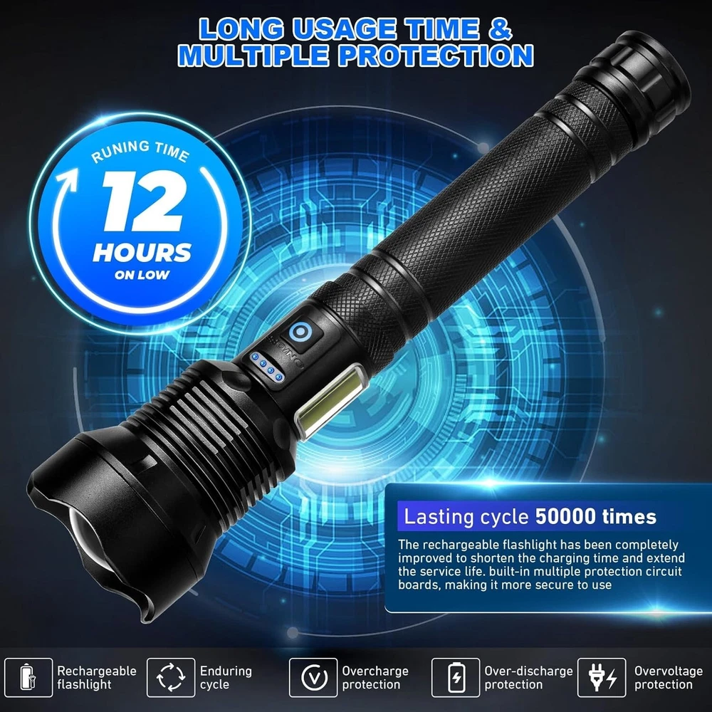 Super Bright 990K Lumens LED Flashlight - 7 Modes Waterproof Rechargeable