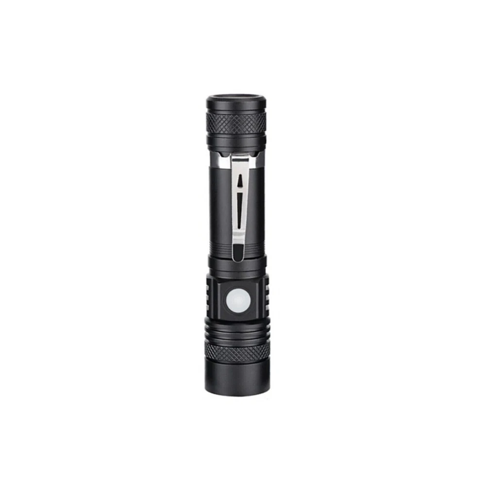 Flashlight Material: Aluminum Color: Black Modes: High/Low/Strobe Size: As Picture Show Package Include: 1X Flashlight or 2X Flashlight 1X USB Cable or 2X cables 1X Rechargeable Battery or 2X Rechargeable Battery Features: 1. Super Bright LED flashlight: Installed with bright T8 light bulb, can reach 200 - 300 meter. 2. USB Charging: Come with usb cable, easy to be charged by any usb interface like power bank, car charger. 3. Adjustable Focus: 3 modes ( High/Low/Strobe) and wide-to- narrow beam zoom makes this flashlight ideal for use around the house, dog walking, or camping. 4. Small and Lightweight: Compact enough to fit in your pocket, backpack, or purse allowing for easy storage and quick access. 5. IP65 Waterproof: Perfectly used in the rain, snow or emergency situations. 6. Pocket clip design :The pocket clip helps to keep the flashlight from rolling away when it & apos;s placed on a flat surface and can be tied to belt, makes this small flashlight perfectly as your EDC flashlight.