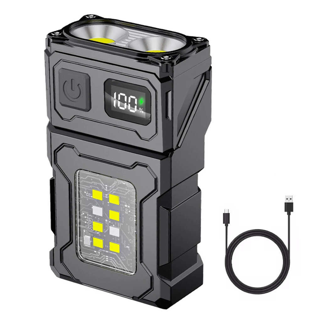 Features: Multi functional lighting: This flashlight can not only serve as a car inspection light, but also as a work light, suitable for various occasions such as home maintenance, outdoor exploration, and nighttime walking. Its versatile design allows you to obtain the necessary lighting in different environments, reducing the number of tools you carry and improving usability. Portable Mini Design: The lightweight size (suitable for carrying in pockets, backpacks, or toolboxes) and light weight make this flashlight perfect for carrying around. Whether for daily use or travel, it can easily adapt, ensuring that you can quickly access it when needed and meet your lighting needs anytime, anywhere. Fast charging and long battery life: Equipped with Type-C USB charging interface, compatible with various modern device charging cables, making charging more convenient and fast. Built in 800mAh polymer battery, supports long-term use, ensuring that you will not lose lighting due to low battery in critical moments, suitable for long-term outdoor activities or emergency situations. Waterproof and durable: Adopting IPX4 waterproof design, it ensures normal use even in rainy or humid environments, suitable for outdoor exploration, camping and other activities. The high-strength shell is impact resistant and can withstand accidental drops and impacts, ensuring the long-term stability of the flashlight and reducing the need for maintenance and replacement. Intelligent lighting mode: Equipped with advanced LED COB technology, it provides 8 different lighting modes, including strong light, soft light, flashing, etc., to meet the lighting needs of different occasions. The intelligent battery level indicator function allows you to keep track of the remaining battery level at any time, avoiding accidents during use. At the same time, it can automatically adjust the brightness according to the ambient light, improving the user experience. Specifications: Net weight of the product: around 80 grams Product wick: LED+COB Charging method: Type-C fast charging Battery display: 100% -75% -50% -25% Battery capacity: Built in 800Mah lithium battery Waterproof grade: IPX4 Product size: 81 * 45 * 26mm Product Material: ABS+Aluminum Alloy Features: Strong magnet at the bottom/back pen clip/rotatable Package List: 1 x flashlight 1 x USB charging cable 1 x Instruction manual On Dec 23, 2024 at 17:32:53 PST, seller added the following information: