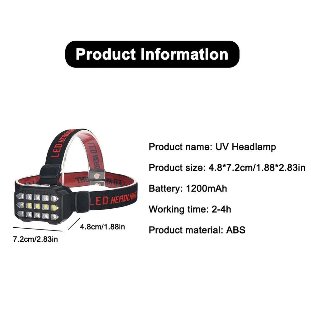 Description Description&Preview shipping&policy Description: Product name: UV Headlamp Product size: 4.8*7.2cm/1.88*2.83in Battery: 1200mAh Working time: 2-4h Product material: ABS Product features: 1. UV headlamp with purple and white light modes for versatile use. 2. USB rechargeable for convenient powering up. 3. Adjustable 90-degree angle for flexible lighting options. 4. Ideal for use as a scorpion-hunting light or for other outdoor activities. 5. Provides a powerful combination of UV and white light for various tasks. Precautions: 1. As we all know , the different computers display colors differently, the color of the actual item may vary slightly from the following images. 2. If you feel difficult to choose the size, you can feel free to contact me we will give you some suggestion, but it is for you reference only. Package includes: 1 pc UV Headlamp Preview: Thank you for your purchase Problems? You can follow below process to contact us. There is a time zone difference,but we will do our best to quickly response to your questions: Shipping ● We will arrange shipping for you within 24 Hours after payment cleared except the holidays. ● We always send the item to the address you give us on Payoneer to ensure the security of the item. If you have changed your address, or want us to ship to another address, please change to the new address when you pay us with Payoneer, otherwise we will not be responsible if the package is lost. Payments We accepts Payoneer only If you have any questions about the payment,please contact us through eBay message. Import Duties In case some duty is due Upon delivery, it is your responsibility to meet that expense and this may cause delays to delivery schedule and you may have to pickup goods at the customs office. Terms & Conditions By bidding on this item,the Buyer agrees to all of the terms and conditions as outlined in this listing .please ensure to read and agree to All eBay terms and Conditions before bidding. All pictures are for illustration purpose only and Colours may vary slightly. Our store obeys all eBay Rules and Policies. Returns Policy To Return an item you must contact us and take photos of your item to clearly show any damage or unusual aspects of it. Approved returns will be subject to inspection on arrival. Items must be returned in original condition with all original packaging. All shipping and handing charges are non-refundable Return delivery costs are the responsibility of the buyer. We will cover the cost if sending replacement/repaired items. Within 7 days after receiving your products, we offers a no-hassle 7 day exchange/replace only if your items are found to be defective by manufacturer.