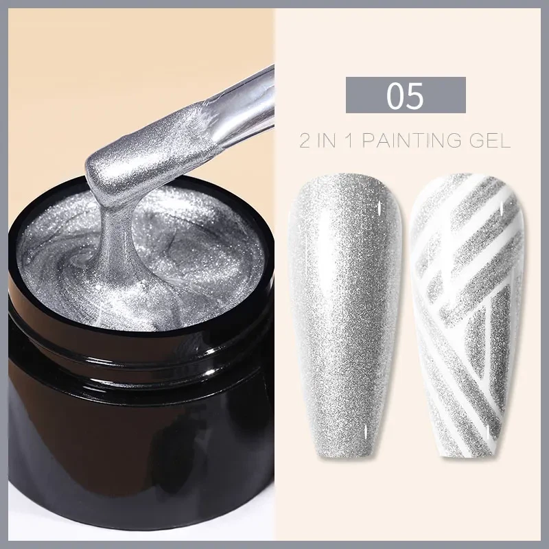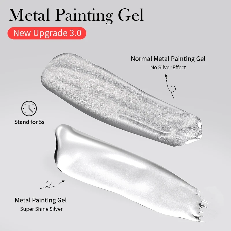 Super bright Metallic Painting Gel Polish Soak Off Gel Nail Polish Flower Drawing Silver Mirror Glitter UV Gel Specification: Brand: BORN PRETTY Type: Gel Polish Quantity: 1 Box Volume: Approx. 5ml Ingredient: Resin Long Period: About 15 Days Effect: Metallic Effect Certification: SGS, MSDS, REACH, CPNP Curing Tools: UV Lamp or LED Lamp Package Contents: 1 Box 5ml BORN PRETTY Metallic Painting Gel Polish Unique Selling Proposition: It made of healthy, environmental, friendly, no poisonous, pungent chemical . It is quick drying with any UV Light. Long lasting for at least 2-3 weeks, fantastic and super bright nails for you. This nail gel polish is easy to apply and soak off. Allow you for professional or home nail art design. A professional nail art gift for yourself or your girl friend. Professional usage: Step 1. Clean Nails then clip nail surface as normal nail art process. Step 2. Apply a layer of base gel and cure it. Step 3. Apply a layer of color coat and cure. Step 4. Use painting pen draw the petals and cure it. Step 5. Apply Top Coat. Remove Our UV Gel Nail Polish Step: • Soak nails in a bowl filled with a small amount of pure acetone, or wrap each nail in cotton pad soaked with pure acetone for around 5 to 10 minutes. • Product will start to become soft and you can gently file it away or slide it off using a small wooden stick. Warm Reminder: 1. Avoid all skin contact. If redness or other signs of adverse reaction occur, discontinue use immediately. 2. Keep tightly sealed. Keep out of sunlight. Keep out of reach of children. NOTICE: Please avoid contact with skin. In case of accident or if you feel unwell, seek medical advice immediately(show the label whenever possible)