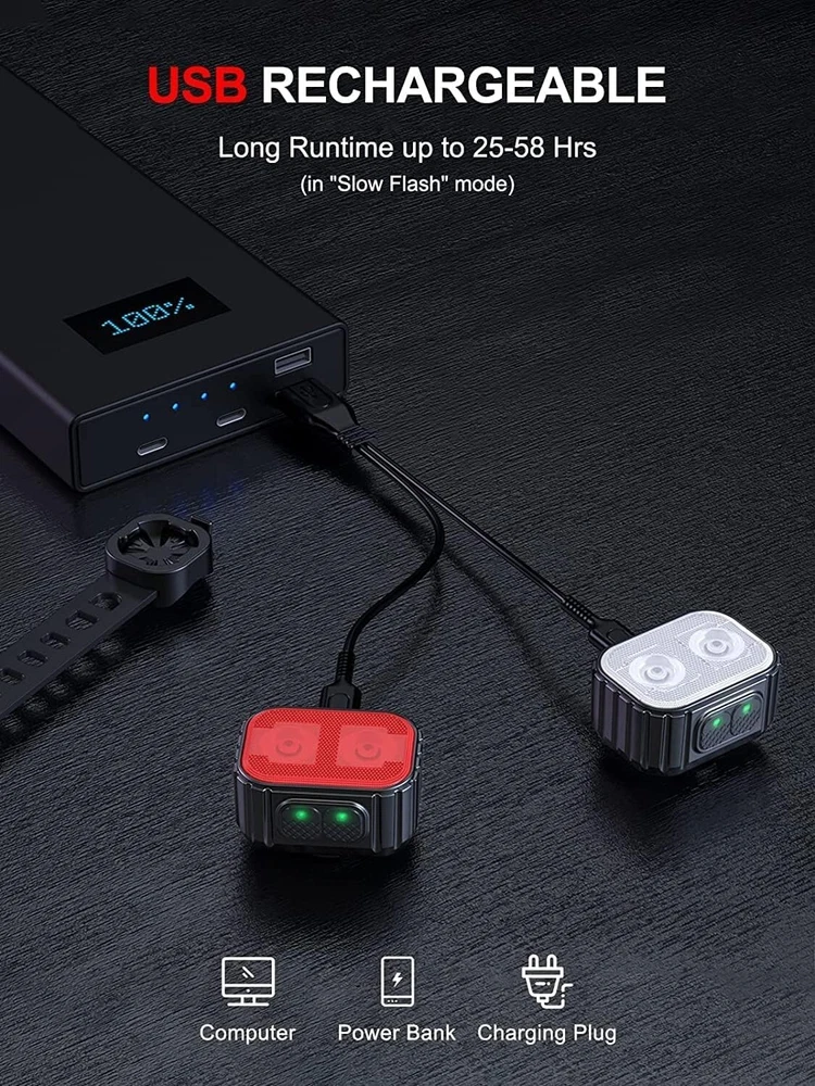 Super Bright Rechargeable Bike Lights Set - 58H Battery Life & Waterproof ‹ › ‹ › ‹ › ‹ › ‹ › ‹ › ‹ › ‹ › ‹ › Super Bright Rechargeable Bike Lights Set 58H Battery Life & Waterproof Features: Innovative design with 2 main LEDs and 19 auxiliary LEDs for increased visibility. Independent switches control a variety of light modes: front light with 4 modes, tail light with 6 modes, usable in combination. Long-lasting battery powered by a 1100MAH front light and a 350MAH tail light: headlights last up to 58 hours and taillights 25 hours in 'Slow Flash' mode. Battery indicator alerts you to charge when levels drop below 20% with a flashing green light. IPX6 waterproof rating for reliable performance in rainy or foggy conditions, extending the lifespan of the lights. Easy installation requiring no tools - just four simple steps to secure to the handlebars. Benefits: Ensure safety during night rides or in low visibility conditions. Versatile use beyond biking - perfect for hiking, camping, or emergency lighting. Ideal for all cyclists and outdoor enthusiasts, brightening their environment wherever they go. A thoughtful gift for friends and family who value safety and adventure. Why choose our Rechargeable Bike Lights Set? Elevate your cycling experience with the Super Bright Rechargeable Bike Lights Set, meticulously crafted to provide exceptional illumination, versatility, and safety. With an impressive battery life and waterproof durability, these lights are designed to withstand the elements while ensuring you remain visible in any adventure. Perfectly simple to install, even a child can do it, making it an essential accessory for every cyclist. This holiday season, give the gift of security and confidence to your loved ones or treat yourself to safer rides with our premium bike lights. Illuminate your path and ride with peace of mind. Shipping Free & Fast Shipping - We offer free shipping to most of the USA with a normal delivery time of 3-7 days. However, due to the current situation, additional delivery time (up to 3 weeks) may be required for some items. Alternative Carriers - We may use alternative carriers (e.g. USPS, FedEx, UPS, etc.) to ensure your package arrives safely and on time. Due to the use of multiple carriers, we are unable to provide a tracking number automatically. Handling Time - Orders are processed and shipped within 1-2 business days of receiving cleared payment. Shipping Restrictions - Shipping to Alaska, Hawaii, Puerto Rico, Guam, and other US territories may incur shipping charges or delivery restrictions. Please contact us before ordering, or your order can be refunded/cancelled. State Restrictions - There may be restrictions based on your state of purchase. For example, certain items may not be shipped to California due to state regulations. Contact for Tracking Updates - If you require tracking updates or have any concerns about the delivery of your order, please feel free to contact us, and we will be happy to assist you. Return 30-Day Hassle-Free Returns - We want you to be completely satisfied with your purchase. If you are not, you can return the item within 30 days of receiving it for a full refund or exchange. Easy Return Process - To start a return, simply contact us and we will provide you with a prepaid return shipping label and detailed instructions. Restocking Fee - There are no restocking fees for returns. However, the buyer is responsible for return shipping costs if the return is not due to a seller's error. Refund Processing Time - Refunds will be processed within 5 business days of receiving the returned item in its original condition. Payment We accept all major credit cards, PayPal, and Apple Pay for your convenience. Your payment information is secure and encrypted to ensure a safe and seamless transaction. Please complete your payment within 3 days of purchase to avoid any delays in shipping. Feedback Your feedback is extremely important to us. We strive to provide the best products and customer service possible. If you are satisfied with your purchase, please take a moment to leave us a positive review. If you have any concerns or issues with your order, please contact us before leaving negative feedback. We are committed to resolving any problems and ensuring your satisfaction. Contact Us If you have any questions or concerns, please feel free to reach out to our customer support team. You can contact us through the eBay messaging system. We are available Monday to Friday, 9:00 am to 5:00 pm EST, and we will do our best to respond to your inquiry within 24 hours. Buy it now and enjoy a pleasant shopping experience! UPC: Not Set Model: Bicycle Lights Item Height: Bicycle Lights Item Length: Bicycle Lights Item Weight: 144 grams Item Width: Not Set Unit Quantity: 1 Features: Rechargeable Batteries,High Brightness,Multi Light Modes,Long Runtime,Battery Indicator,IPX6 Waterproof,Easy to Install,Multiple Uses Material: Polyvinyl Chloride Brand: Unbranded Type: Head & Tail Light Set Bulb Type: LED Color: Black Country/Region of Manufacture: Not Set Manufacturer Warranty: Not Set MPN: Not Set Unit Type: grams Vintage: Not Set