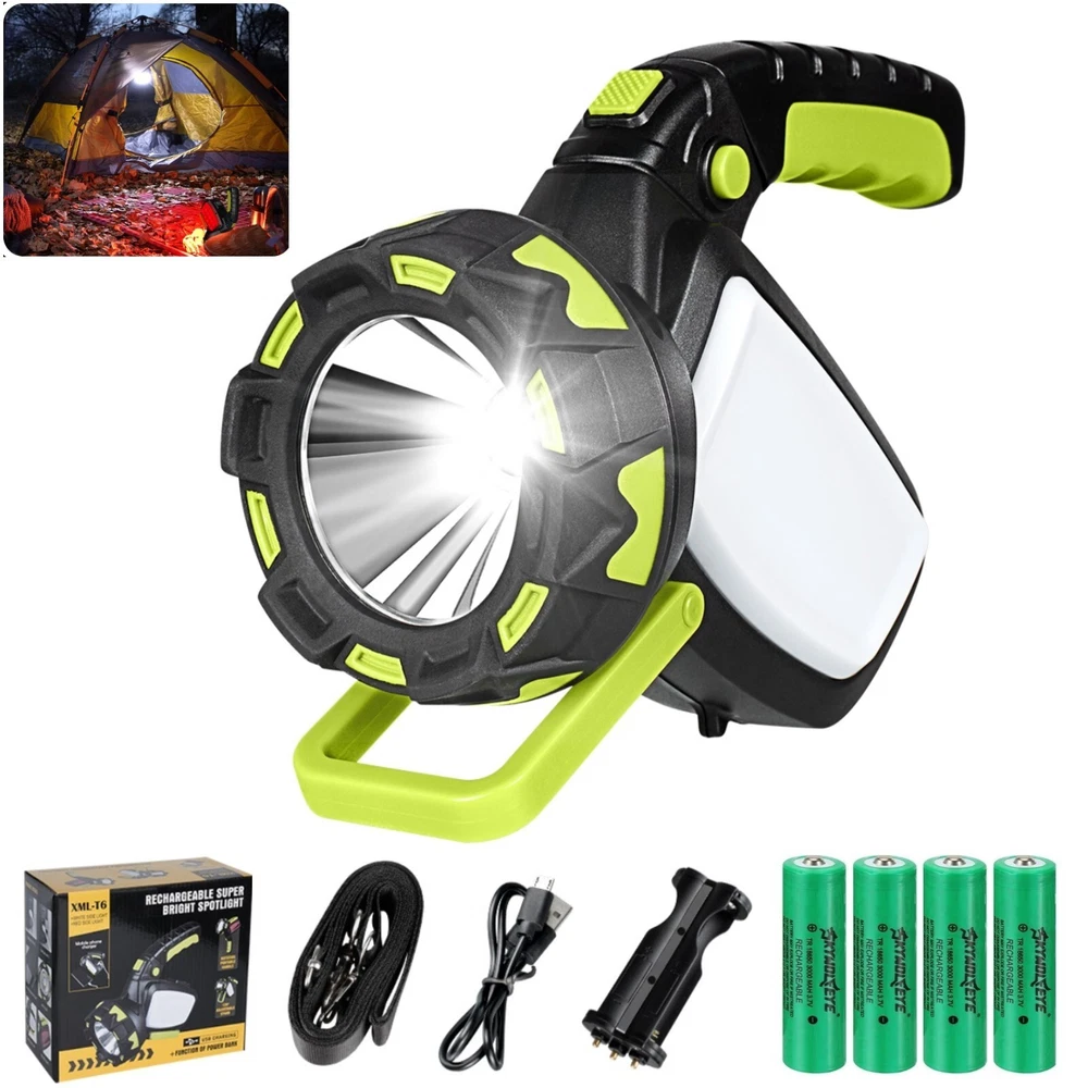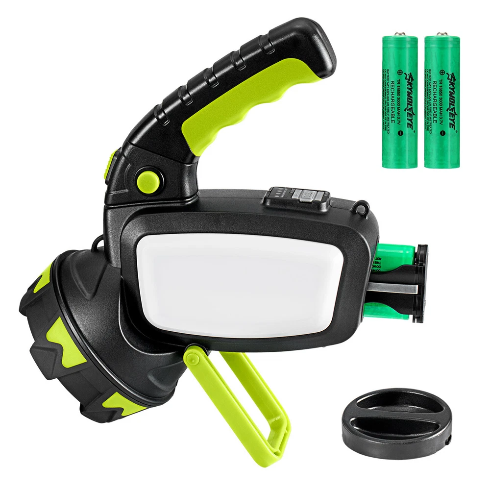 Model: Super Bright LED Spotlight Rechargeable USB Battery Included: Yes Features: Batteries Included, Battery Powered, Handheld, Rechargeable, Waterproof Brand: Sky Wolf Eye Custom Bundle: No Power Source: 2X Rechargeable Batteries Color: Black Country/Region of Manufacture: China Operating Time: 5-10 Hours Type: Spotlight MPN: Does Not Apply Lighting Technology: LED Operating Range: More Than 20 m Battery Technology: Rechargeable Battery Number of Lights: 4-6