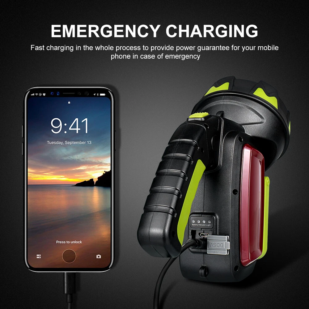 Super Bright Rechargeable LED Spotlight Flashlight with USB Handheld Searchlight for Powerful Illumination