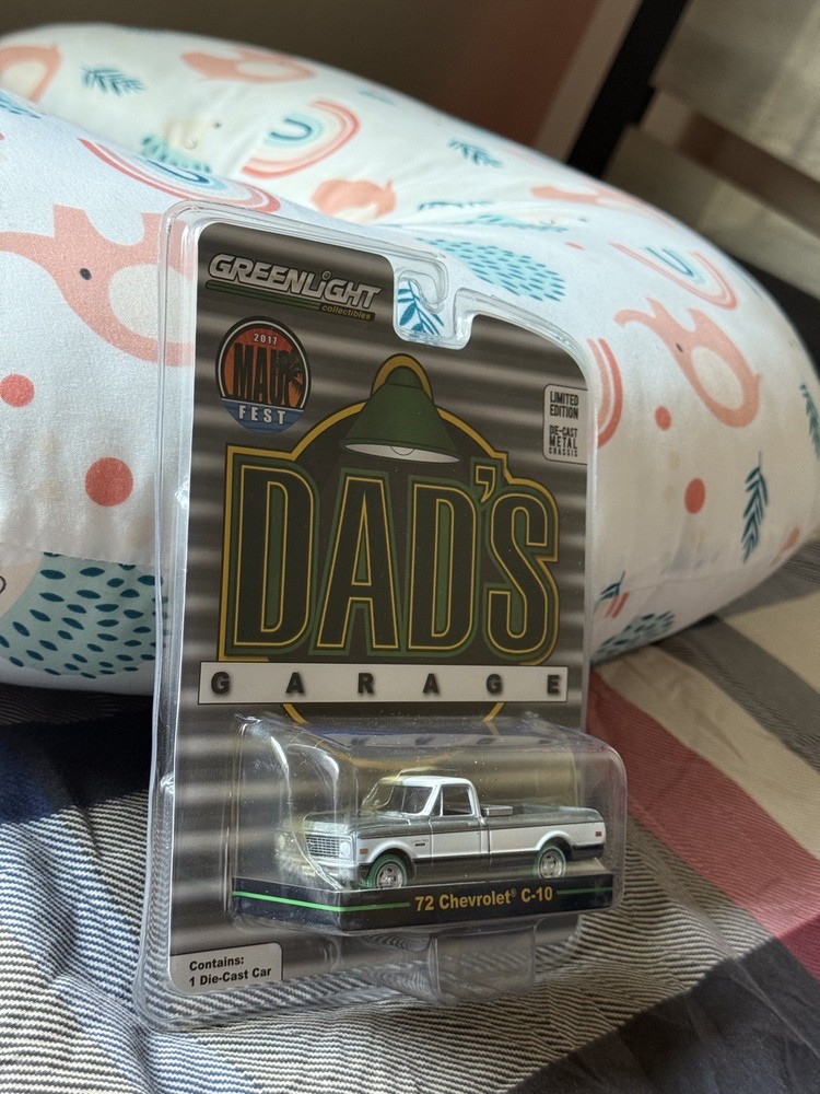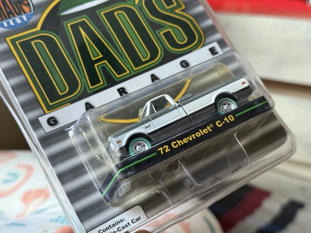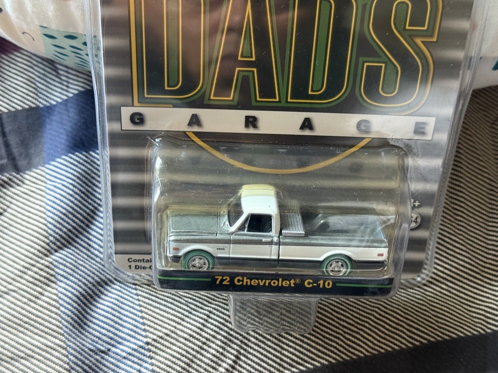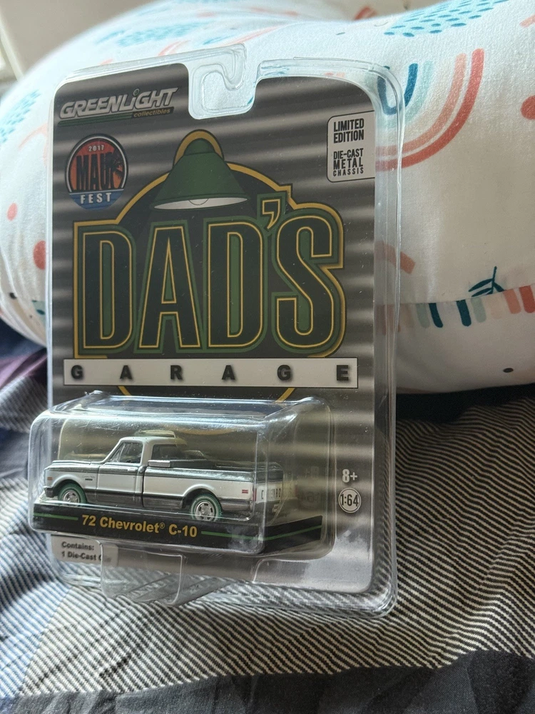 The product is a 1:64 scale diecast 1972 Chevrolet C-10 pickup truck in a RAW green color. It is part of the MAUI FEST 2017 series by Greenlight and features a limited edition chase model. The Chevrolet C-10 is themed as "Dad's Garage" and is suitable for kids aged 8 and up. This collectible item comes in an unopened box and is a must-have for both boys and girls who are fans of classic pickup trucks.