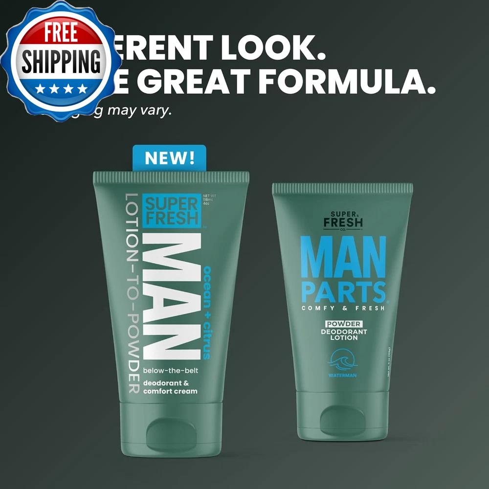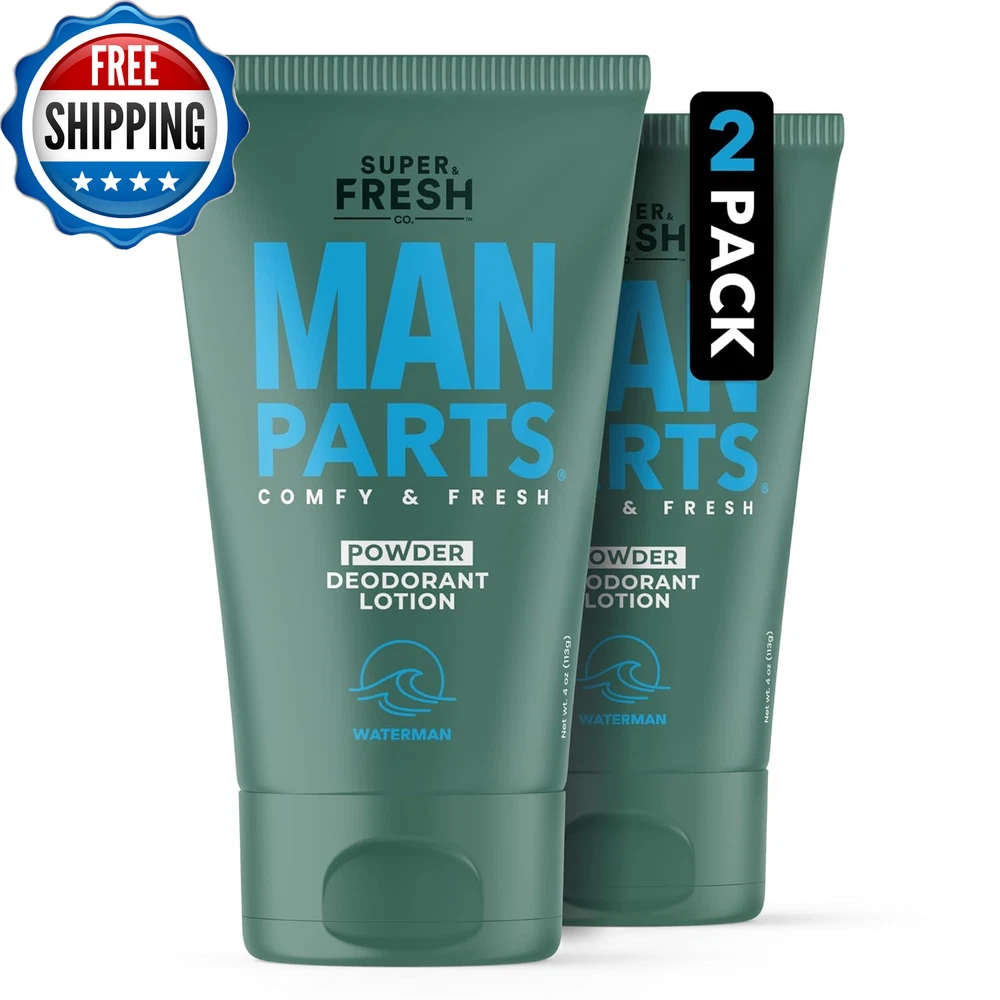 Super Fresh Man Parts Ball Deodorant for Men | POWDER LOTION | Mens Hygiene Cream for Groin, Butt, & Body | Fresh Control Odor, anti Chafing, Stop Itch, Absorb Sweat | Aluminum Free | 4 Oz Tube LIQUID POWDER BALL LOTION & GROIN DEODORANT FOR MEN. Stay fresh, stop groin & butt stickiness, chafe, and odor. Fight odor & itch with the ultimate mens body powder lotion for ball, groin, and backside comfort & freshness. BALL DEODORANT LOTION THAT TURNS TO A BALL DEODORANT POWDER - To keep things fresh and comfy below the belt, simply rub on a pea-sized amount of Super Fresh Man Parts deodorant lotion and watch it dry to a silky layer of crop preserving ball powder. STOP SWAMP CROTCH, ODOR, AND DISCOMFORT | A little goes a long way. Apply Super Fresh ball cream thoroughly, let it dry (very important), then get dressed. Dries fast to a smooth powdery finish. Great for fighting odor, jock itch, pinching, stickiness, and absorbing mild ball sweat. MENS BALL DEODORANT W/ NATURAL INGREDIENTS | SAFE FOR WHOLE BODY | NO talc, NO aluminum, NO parabens, & NO animal testing. Made with oat flour, arrowroot, witch hazel, kaolin clay, and organic aloe. ENJOY FRESHNESS WHERE IT COUNTS | Great for man parts, skin folds, butt, & feet. Proudly formulated, filled, and sealed in the U.S.A. Product Description 1 Stop Odor 2 Stay Fresh 3 Stay Confident Other Products from Super & Fresh Co. Add to Cart Add to Cart Add to Cart Add to Cart Add to Cart Add to Cart Add to Cart Customer Reviews 4.3 out of 5 stars 1,763 4.2 out of 5 stars 7,293 3.9 out of 5 stars 10,705 4.1 out of 5 stars 5,624 4.3 out of 5 stars 52 4.2 out of 5 stars 267 4.4 out of 5 stars 144 Price $13.99 $ 13 . 99 $9.99 $ 9 . 99 $9.99 $ 9 . 99 $13.99 $ 13 . 99 $9.99 $ 9 . 99 $9.99 $ 9 . 99 $13.99 $ 13 . 99 Whole Body? ✔ ✔ ✔ ✔ ✔ ✔ ✔ Powder Protection? No - Invisible Finish Yes - Lotion-to-Powder Yes - Lotion-to-Powder No - Invisible Finish No - Invisible Finish No - Invisible Finish No - Invisible Finish Deodorizing? Yes Yes Yes Yes Yes No Yes Chafe Control? No Yes Yes No No Yes No Fragrance: Waterman (Aqua-themed) Waterman (Aqua-themed) Coconut Vanilla Coconut Vanilla Coconut & Vanilla Unscented Arabian Jasmine & Rose Ok for Sensitive Skin ✔ ✔ ✔ ✔ ✔ ✔ ✔ Style Powder Lotion 1 Pack Special Feature Natural Ingredients Country of Origin USA Material Type Free Aluminum Free Item Form Lotion-to-Powder Package Dimensions 7.56 x 5.55 x 2.05 inches; 4.59 ounces Shipping Fast shipping is very important for us. Our standard US shipping service is FREE. Your order will be shipped within 2-3 business days upon full payment received. Your order will be delivered within 2-3 business days after the handling time. We only ship to the confirmed PayPal address. We reserve the right to cancel any order for any reason at any time. We are not responsible for undeliverable addresses. Returns and payment We offer a 30 days return policy from checkout winning date. We allow only PayPal as payment method FeedBack Your feedback very important to us, after you get your package and you are satisfied with our service please leave us positive feedback If you have any problem with your order / any questions please before leave any type of feedback Please visit our eBay store to check out other items for sale! Thank you for shopping at our store.