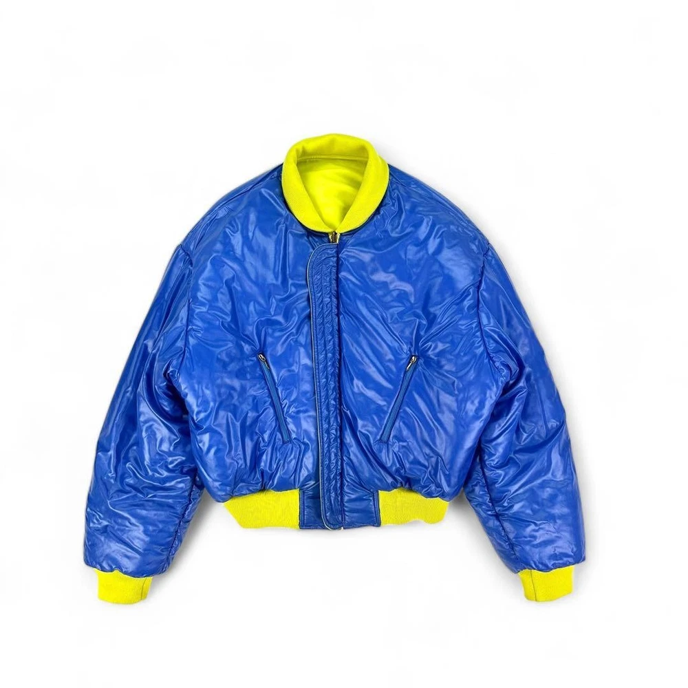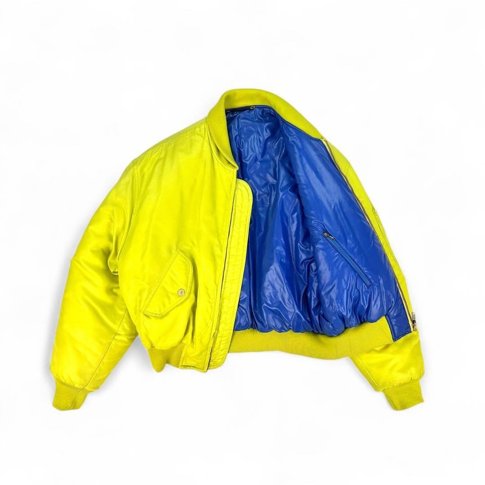 [Super God Rare] VERSACE Reversible Bomber Jacket Key Features This is a rare, reversible Gianni Versace VERSUS bomber jacket made in Italy. Featuring bold yellow and blue sides, it offers a striking silhouette with a fitted waist and shoulder emphasis. Crafted from 100% polyamide, it includes high-quality Italian zippers by Lampo. Size is approximately M-L, with detailed measurements provided. Perfect for fashion enthusiasts seeking a unique, luxurious piece. Measurements (cm): Shoulder width: Approx. 61cm Chest width: Approx. 64cm Sleeve length: Approx. 54cm Length: Approx. 61cm Material: 100% PA Item Specifics: Brand: VERSACE Model: VERSUS reversible bomber jacket Material: 100% Polyamide Color: Yellow, Blue Size: M-L Country/Region of Manufacture: Italy Specifications Brand VERSACE Country Japan Product Description Description Thank you for your interest. This item is not new, but a used item that was given away. Please check the photos for the condition of the item. Please understand that the condition of the item is subjective and the standard of evaluation and feeling may vary from person to person, so please be aware that this is a used item before bidding. Please check the photos for the condition of the item, such as scratches and stains. To prevent problems, please feel free to contact us if you have any questions about the size or other details of the item. We will be happy to adjust the price. We will do our best to ship your order as soon as possible. We will do our best to ship as soon as possible, but there may be delays during the busy harvest season. Remarks All the products we sell are obtained and sold by pawn shops that are authorized brands, so all the products we handle have been authenticated to meet our strict standards for authenticity, so please buy with confidence. Payment Supports managed payments Please pay within 5 days after auction is finished. About Us We are located in Japan. It's our pleasure to make you happy by proposing our recommend item. If you have any questions or request about items, please feel free to ask us. International Buyers - Please Note: -Importduties, taxes, and charges are not included in the item price or shipping charges. These charges are the buyer's responsibility. -Please check with your country's customs office to determine what these additional costs will be prior to bidding/buying. -These charges are normally collected by the delivering freight (shipping) company or when you pick the item up - do not confuse them for additional shipping charges. -We do not mark merchandise values below value or mark items as - gifts - The US and International government regulations prohibit such behavior. Thank you for your understanding ]]>