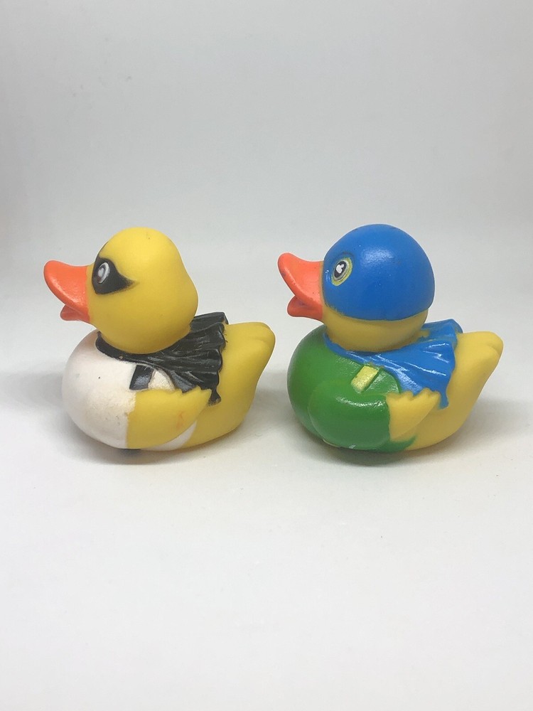Super Hero Rubber Ducks 2” Ducky Set of 2 Bath Pool Jeep Toy. Note: they have wear shown in photos! Each duck measures about 2 inches. Thank you for stopping by!