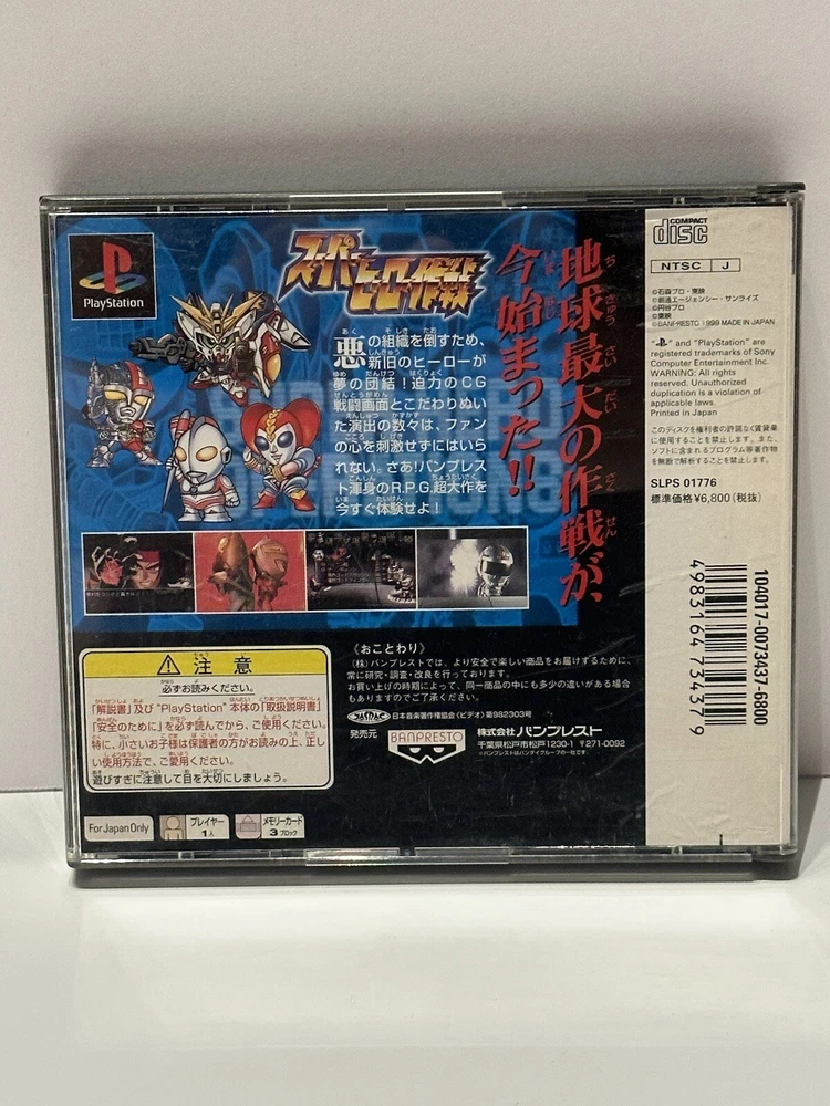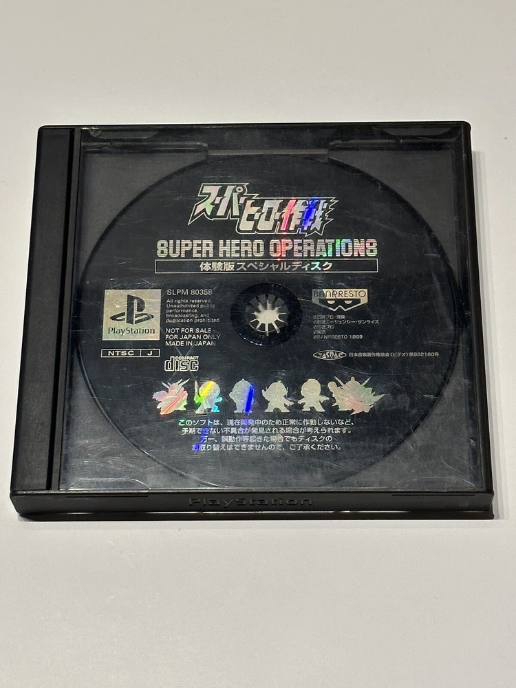 Manufacturer Warranty: None Custom Bundle: No Release Year: 1999 Region Code: NTSC-J (Japan) Game Name: SUPER HERO OPERATIONS Genre: Role Playing gtin13: 4902425426051 Publisher: Sony Rating: E-Everyone MPN: SLPS-01776 Platform: Sony PlayStation 1 Country/Region of Manufacture: Japan UPC: 4902425426051