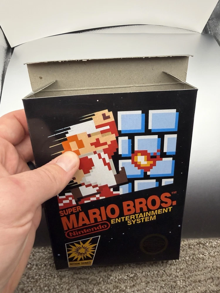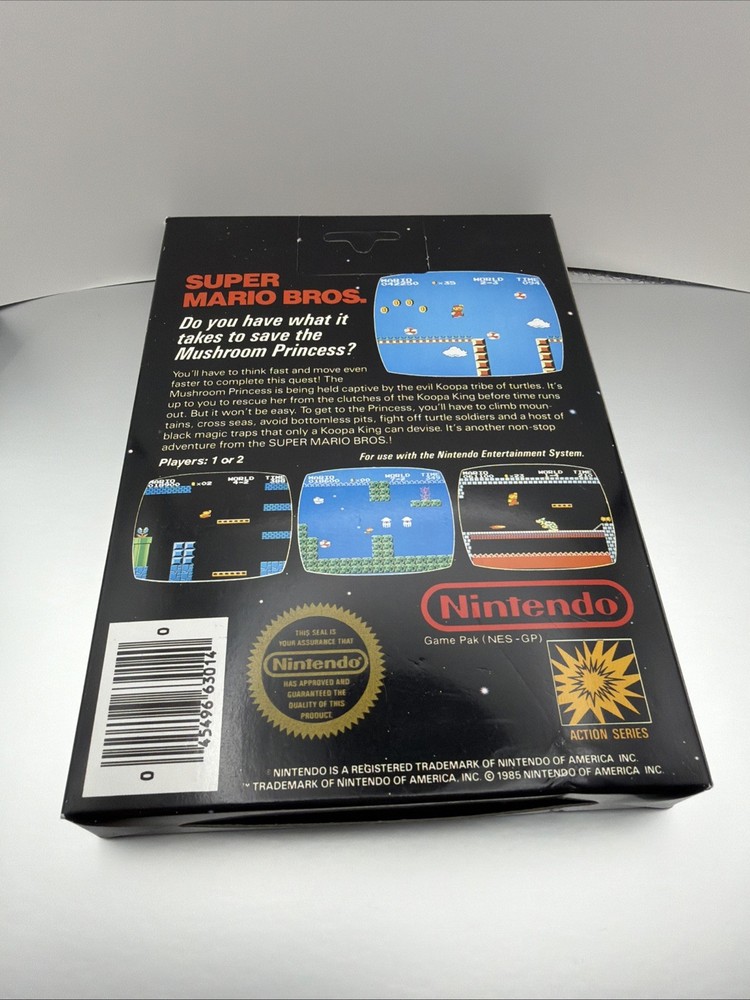 Super Mario Bros. 5 Screw Hangtab COMPLETE BOX NES Early Variant, BOX GRAIL!. Condition is Very Good. Shipped with USPS Ground Advantage. Estate sale find Enjoy!