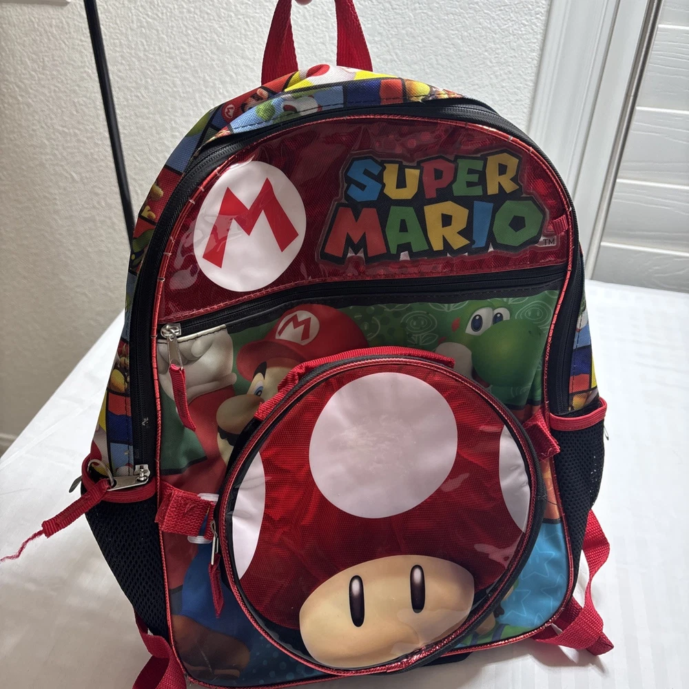 Super Mario Bros Backpack & Insulated Red Mushroom Cooler Bag Bioworld Yoshi. Pre owned shipped with usps ground advantage.