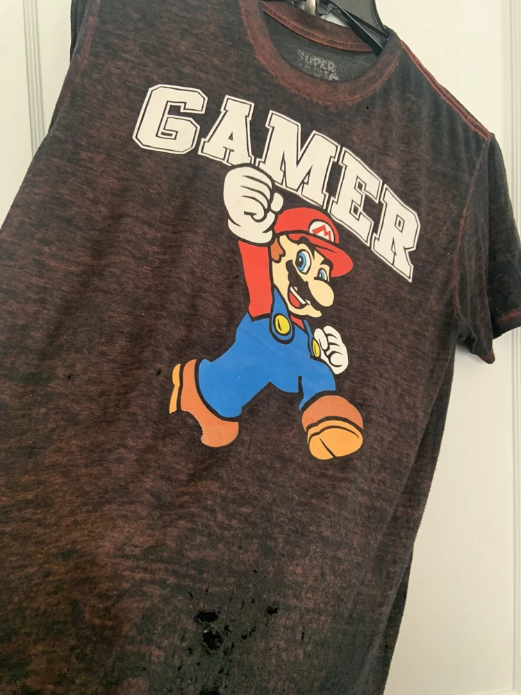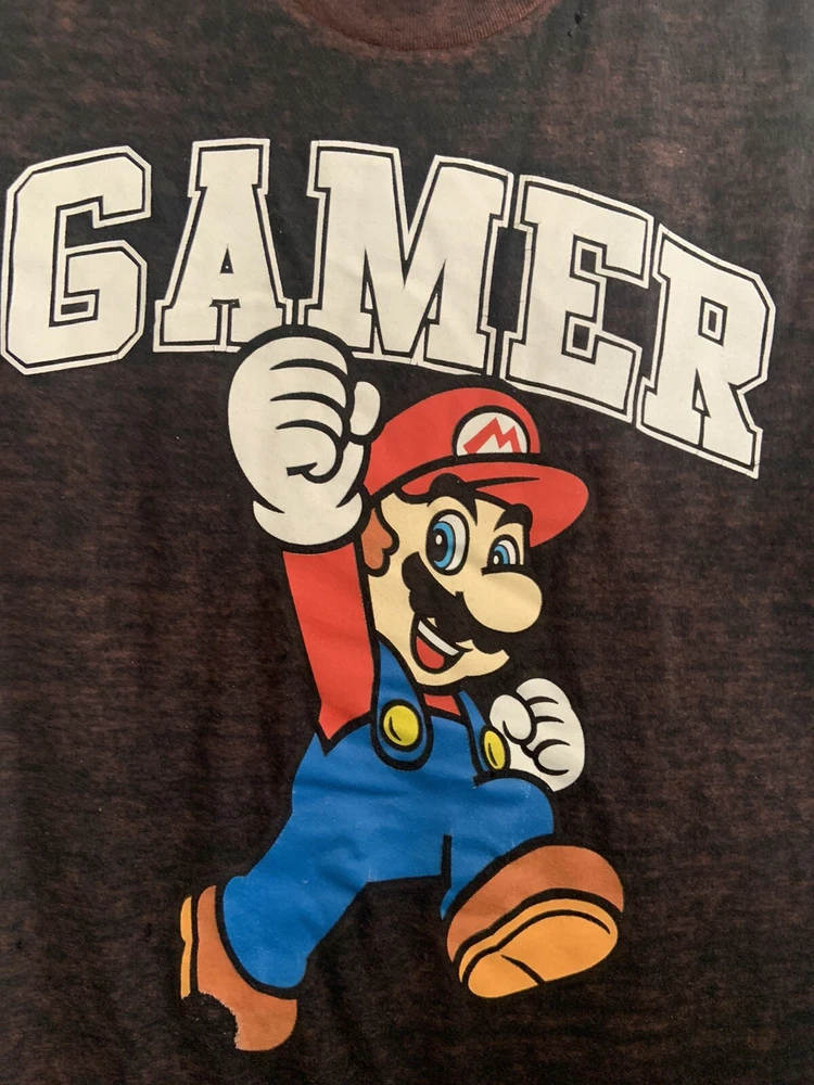 Super Mario Bros Nintendo Gamer Characters Graphic Video Game T-Shirt Adult Sm. See photos. This is vintage. Also it is a very thin knit. Significant distressed look , has some holes in front and in back. Clearly throwback As is We do combined shipping Check out our eBay store/listings We have over 1000 items....Unique, vintage, modern...books, glassware, gifts, toys, clothes, accessories, tech, toys, and more....new and pre-owned items Just click on our profile to see our listings or Go to Our eBay store : Books and Things Uneek ~~~~~~~~~~~~~~~~~~~~~~~~~~~~~~ Whenever possible, we use recycled eco friendly packing material in order to keep shipping cost, item price as low as possible, and to be better stewards of our earth. :) Items, Regardless of condition, may still have sticker or price marked. Please be aware that I will leave removal to buyer so as not to damage book, item, etc Books are listed according to condition. Vintage books, unless stated otherwise, are in usual vintage condition. We do our best to provide adequate photos and accurate descriptions. Please check all photos as they are part of the description. Please know that we have thousands of books, looking through each page for a pencil mark is not possible. We do a check overall condition of our pre-owned books. If a mark is missed, it was not our intent, we will do our best to disclose any mark or flaw. Please note. Antique or vintage items will be left in vintage condition. Any cleaning/refurbishing will be left to buyer to restore or leave in vintage state as to suit buyer’s preference. Return Policy •We will gladly accept your return within 30 days of the original purchase. •Returned or exchanged products must be in brand-new and/ or same condition as shipped •Buyer pays for return shipping •Buyer pays 15% Restocking Fee •Shipping insurance: If items are over $50, I will pay extra insurance coverage for your item if applicable. Thank you.