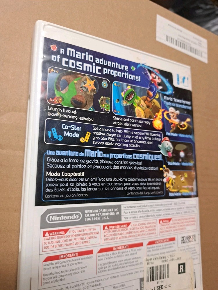 Super Mario Galaxy for Nintendo Wii, released in 2007, is part of the Super Mario Series by Nintendo. This platformer game offers 1-2 players the chance to collect 120 stars across more than 40 galaxies. With support for 480p and 16:9, players can enjoy solving puzzles, battling enemies, and using classic power-ups like the fire flower and super mushroom. Control elements include using the Gamepad/Joystick for gameplay.