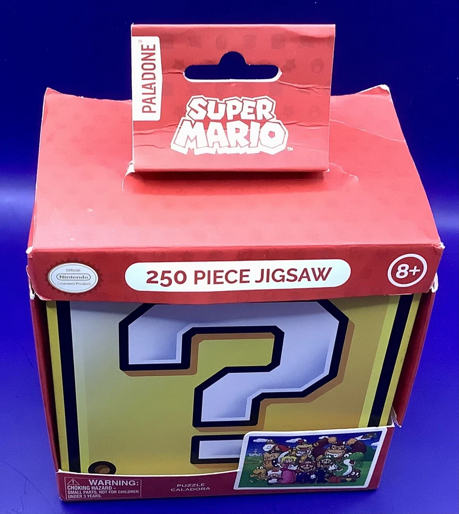 New and sealed! Outside package might have some damage. Get ready for an exciting adventure with this Super Mario 250-piece jigsaw puzzle from Nintendo. This puzzle features a colorful and fun design with your favorite characters from the Super Mario Bros. franchise. With a recommended age range of 8 and up, this puzzle is perfect for gamers of all ages who love to challenge themselves.