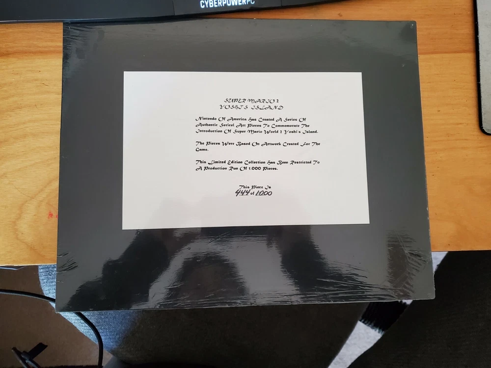 Super Mario World 2: Yoshi's Island (Entertainment System, 1995). Shipped with USPS First Class. Authentic animation panel art piece for Super Mario World 2 Yoshis Island. Sealed never opened. Only 1,000 made piece #444 This is a limited edition animation cell art panel from the Nintendo power super supplies catalog from spring of 1996. Very fast shipping, 1 day. Don't be afraid to contact me for anything!