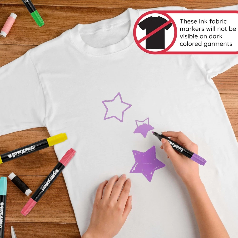 Store New Arrivals Add to Favorite View Feedback Contact Fast deliveries to the customer's home Quality customer service John Make the customers happy! Super Markers 20 Unique Colors Dual Tip Fabric & T-Shirt Marker Set-Double-Ended Fabric Markers with Chisel Point and Fine Point Tips - 20 Permanent Ink Vibrant and Bold Colors Description 20 Unique Primary Colors: A full rainbow of 20 unique, eye-catching colors at your disposal. Crazy Colors fabric markers dry permanently and have rich, vibrant pigments for intense colors on all fabrics, and they resist fading from washing. To achieve bright, bold, and vibrant colors, use the markers on white or light-colored fabric colors. ***These fabric markers will not be visible on dark colored garments***. Bullet and Chisel Tips: Professional artist-quality double-ended fabric markers that provide fine detail lines, bullets, and broad chisel strokes. The fine bullet tip provides accurate line control for outlining, writing, and sketching, and the chisel tip is great for broad writing, filling in, shading, and blending. Fun, Safe and Easy to Use: Our fabric markers are completely kid safe. They are non-toxic, fade proof, washerproof and conform to ASTM D4236 and EN71 certifications for art products. With child-safe breathable caps, they are suitable for children 3 and above. Everyone loves our Crazy Colors fabric markers, because of their ease of use and the exceptional vibrant visual results they achieve with them. Unlimited Uses: Let your imagination run wild when using these fabric markers, as you can decorate everything from T-shirts, clothing, shoes, bags, and placemats to baby items like bibs! Use them to show off your creative side and produce your own stunning artwork! All colors should be air cured for at least 24 hours before wearing and washing for best results. We are confident that you'll be delighted with our Super Markers. If you're not satisfied with them at any time, contact us. Product Description Style 20-Color Primary Set Ink Base Water Number of Items 20 Pattern Solid Material Type Assorted Ink Color Multicolored Theme Art and Creativity Number of Pieces 20 Drill Point Chisel/Fine Additional Features Dual Tip, Fade Resistant, Non Toxic Point Type Chisel/Fine Hand Orientation Ambidextrous Water Resistance Level Waterproof Item Weight 8.8 ounces Marker Type Fabric Marker Surface Recommendation Cardboard, Ceramic, Leather Target Audience Kid, Adult Is Waterproof true Line Size 3 Color Multicolor Recommended Uses For Product Fabric Style Name 20-Color Primary Set ABOUT US We offer the best prices around on high quality products. Our E-store includes media such as books, movies, music and games while offering electronics, toys, sporting apparel, clothing, tools, general home, garden items and more. SHIPPING We are always working hard to ensure your package arrives as soon as possible. Please understand that some factors like weather, high postal traffic, and the performance of shipping companies are outside of our control. We offer free shipping to the lower 48 states and ship within 2 business days of payment, usually sooner. We do not accept P.O. Boxes. Please provide a physical address. For shipping outside of the continental USA, we only use eBay's Global Shipping Program. The item is shipped to KY and then sent to the rest of the world. International customers are responsible for all duties and taxes. Continue to 'check out' to calculate costs for shipping the item to your country. Messages regarding eBay's Global Shipping Program MUST be directed at eBay EXCLUSIVELY. RETURNS We offer a 30-Day Return Policy on items in which you are not completely satisfied with. You have the option of a full-refund or an exchange of the item. No returns are available on items shipped outside of the USA PAYMENT We accept PayPal. CONTACT US This page content is yet to come Please ad us to your favorite seller and visit again later Thank You CUSTOMER SATISFACTION We try our very best to make sure every customer is completely satisfied. If there's a problem, message us! We're happy to help. WE ACCEPT