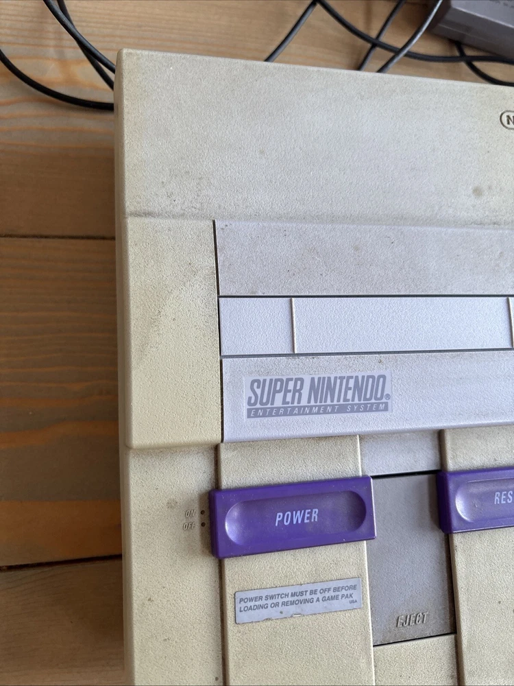 Used SNES that hasn’t been played in a while. I played all of the games on it the day before this listing. In general, the system worked. I played 8 different games. Sometimes, though, the game wouldn’t load on the first try. I don’t know if this is a console issue or game issue. It might work better with A/V cables instead of the original hookups too. System worked when tested but not 100% on the first try. Top of console is dirty even after cleaning.