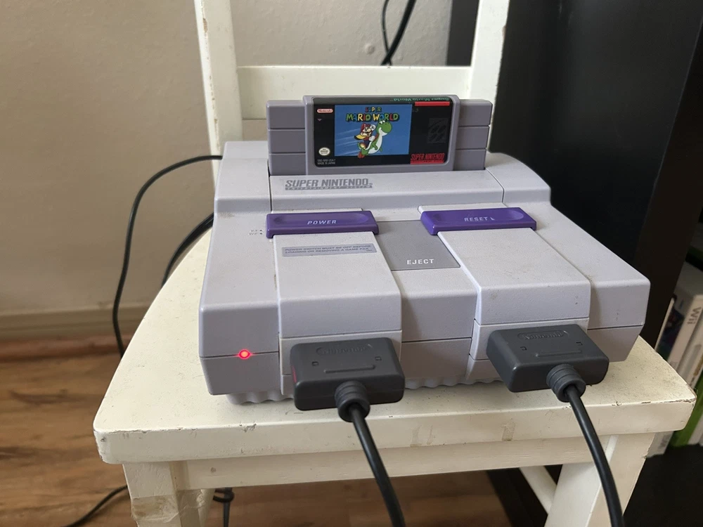 Super Nintendo SNES System Console With 2 Controllers, AC & A/V Cords, Mario opt