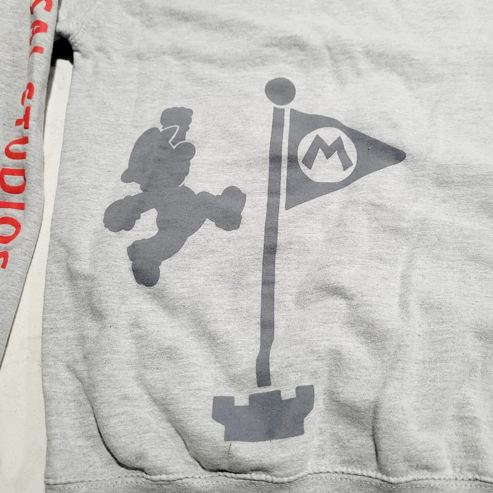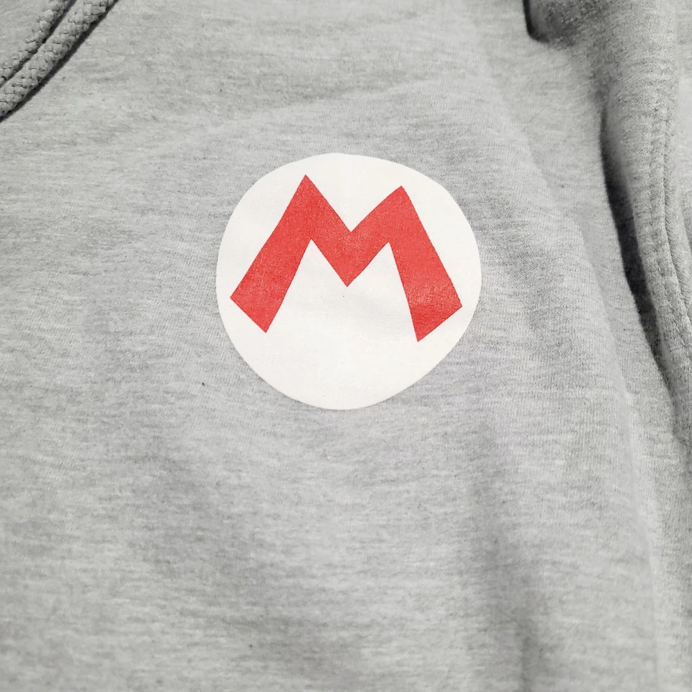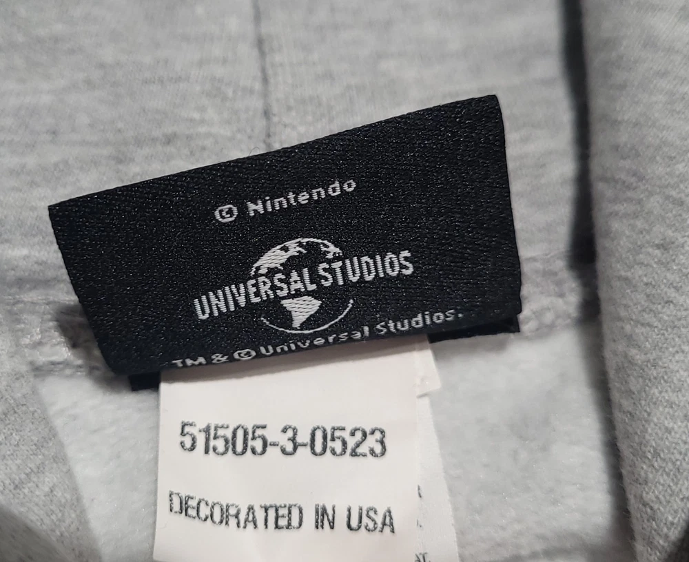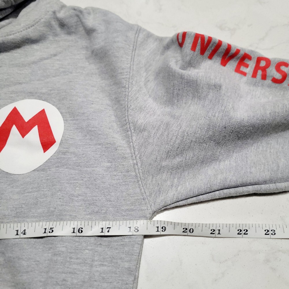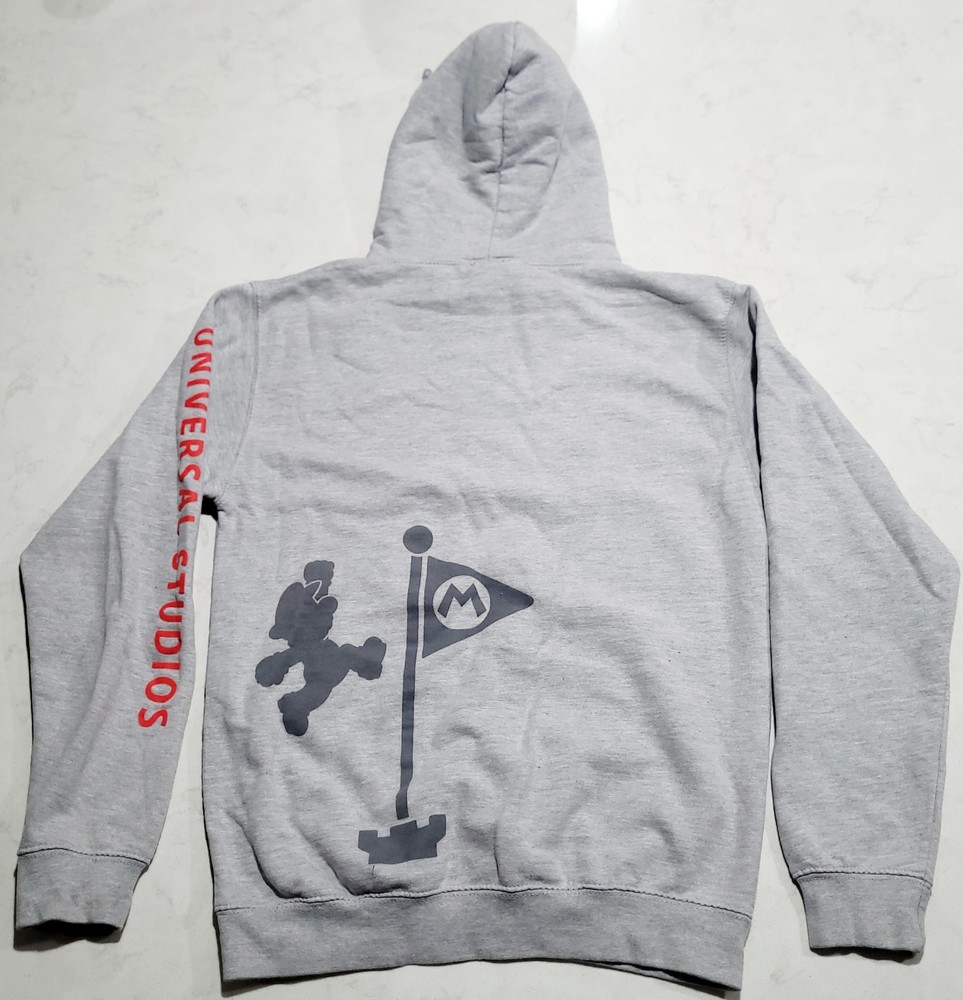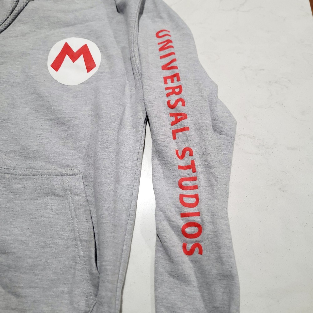NEW WITHOUT TAGS. IN EXCELLENT CONDITION. NO STAINS OR DAMAGE. PLEASE VIEW ALL PHOTOS ABOVE FOR MEASUREMENTS AND PROOF OF CONDITION. STORED IN A CLIMATE CONTROLLED SMOKE-FREE AND PET-FREE HOME. SHIPS PROMPTLY AND SECURELY. Experience the comfort and style of the Super Nintendo World Mario Bros. Universal Studios Hoodie Sweatshirt. Designed for unisex adults in a versatile size large, this pullover is a must-have for fans and collectors alike. Its soft blend of cotton, polyester, and cotton fleece ensures warmth and durability, making it ideal for the cooler seasons of fall, spring, and winter. The hoodie is adorned with the iconic Mario logo, adding a touch of nostalgia to your casual wear. The hoodie features a convenient drawstring closure for an adjustable fit and long sleeves to protect you from the chill. The solid gray color offers easy pairing with your favorite outfits, while machine washability ensures effortless maintenance. Whether you're running errands or enjoying a relaxed day out, this hoodie brings the fun and comfort of Universal Studios' iconic theme park into your everyday life.